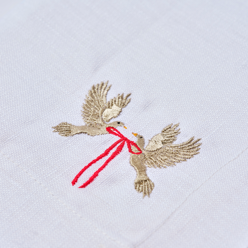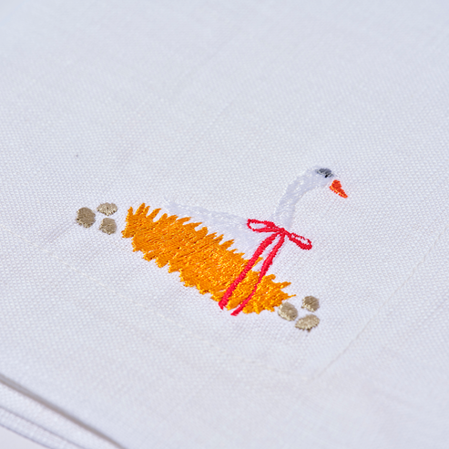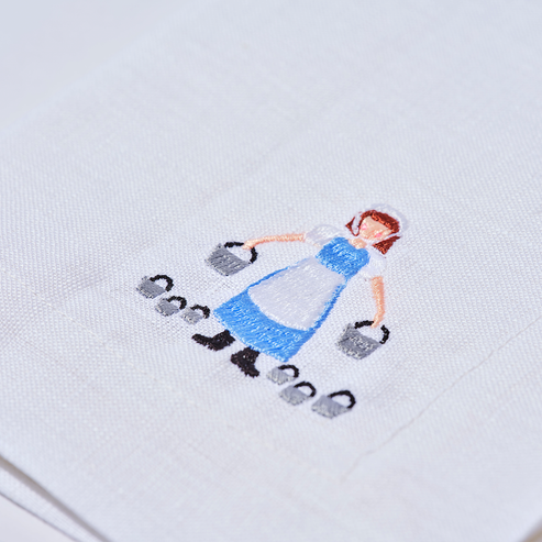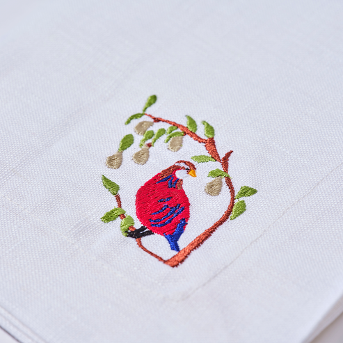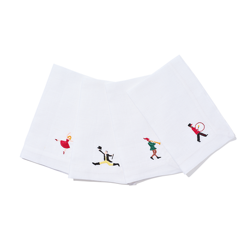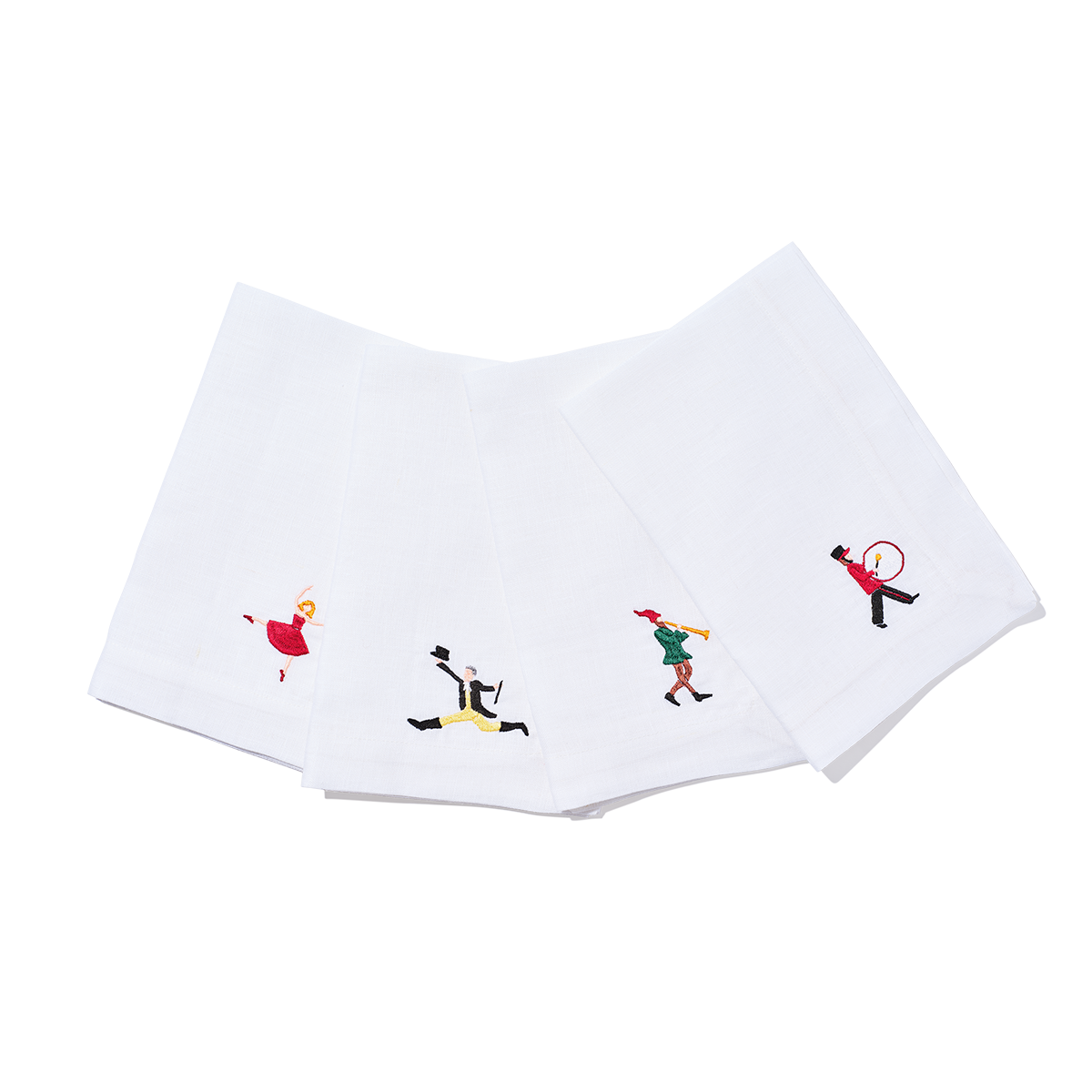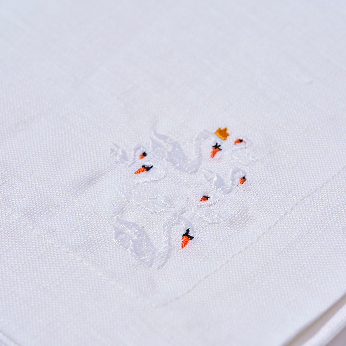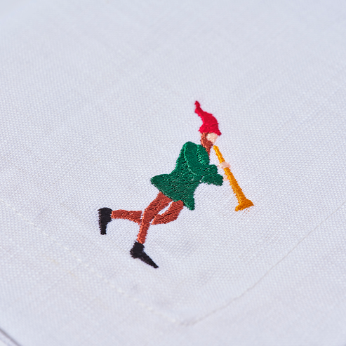 Inspired by the Twelfth Night Christmas carol, our bestselling linen napkins are now available as a limited edition set of 12, each beautifully hand embroidered and designed in-house with motifs from the song. From lords leaping to maids milking, this enchanting set will bring joy and nostalgia to your table for years to come.