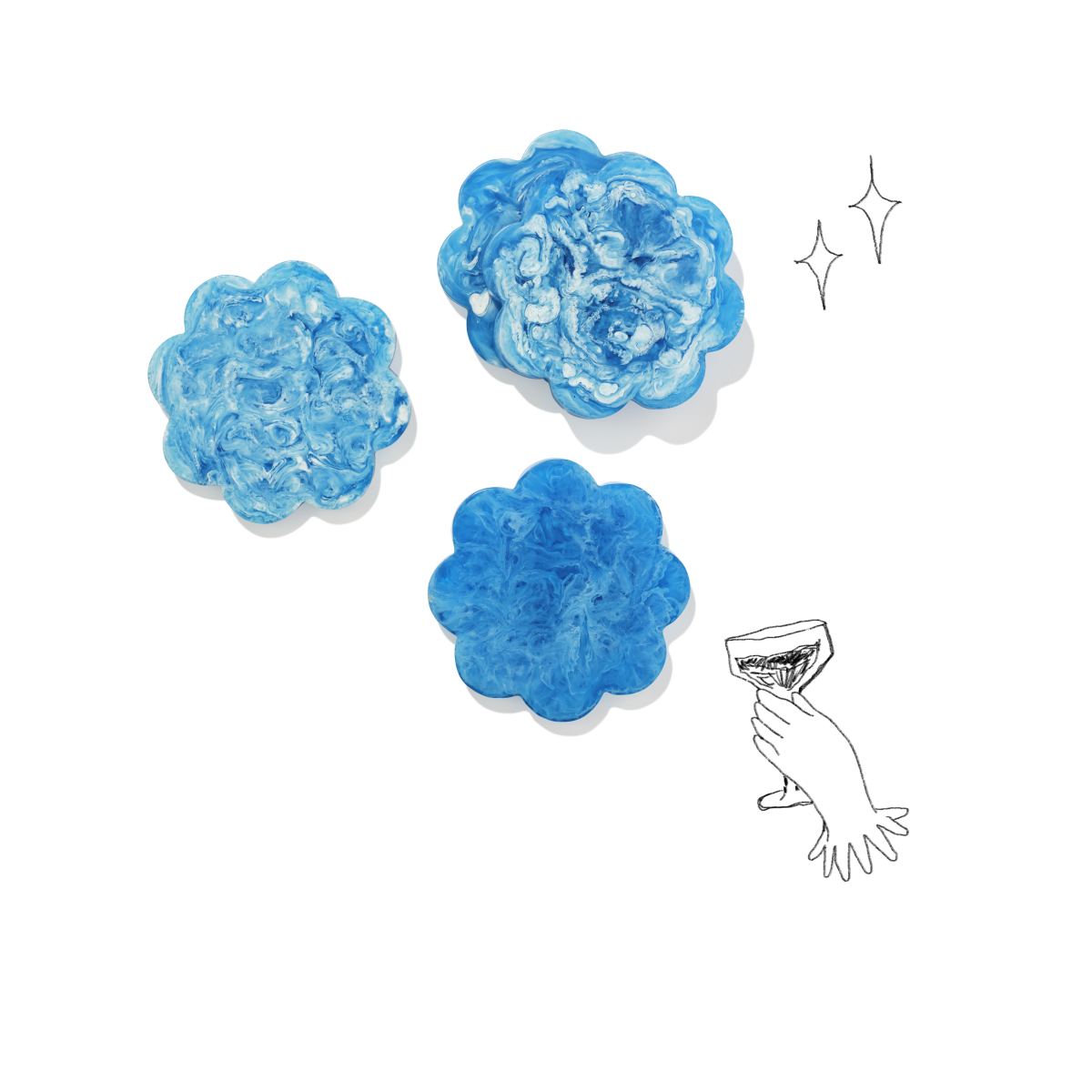 Handcrafted from durable resin in a striking ice blue or mint green finish, these sculptural coasters are both practical and eye-catching. Designed to make a stylish statement on any table or bar and perfect for dinner parties, summer gatherings, or as a thoughtful gift.