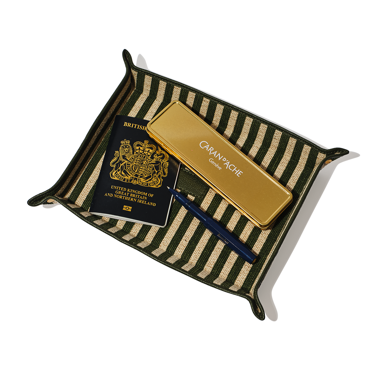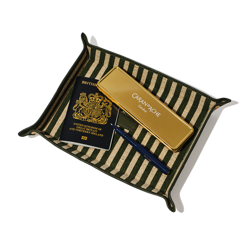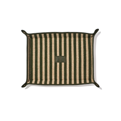 Crafted from premium striped linen with structured edges, this organiser is designed to hold keys, stationery, jewellery, or loose pocket items and brings a refined sense of order to desks, bedside tables, or entryways.