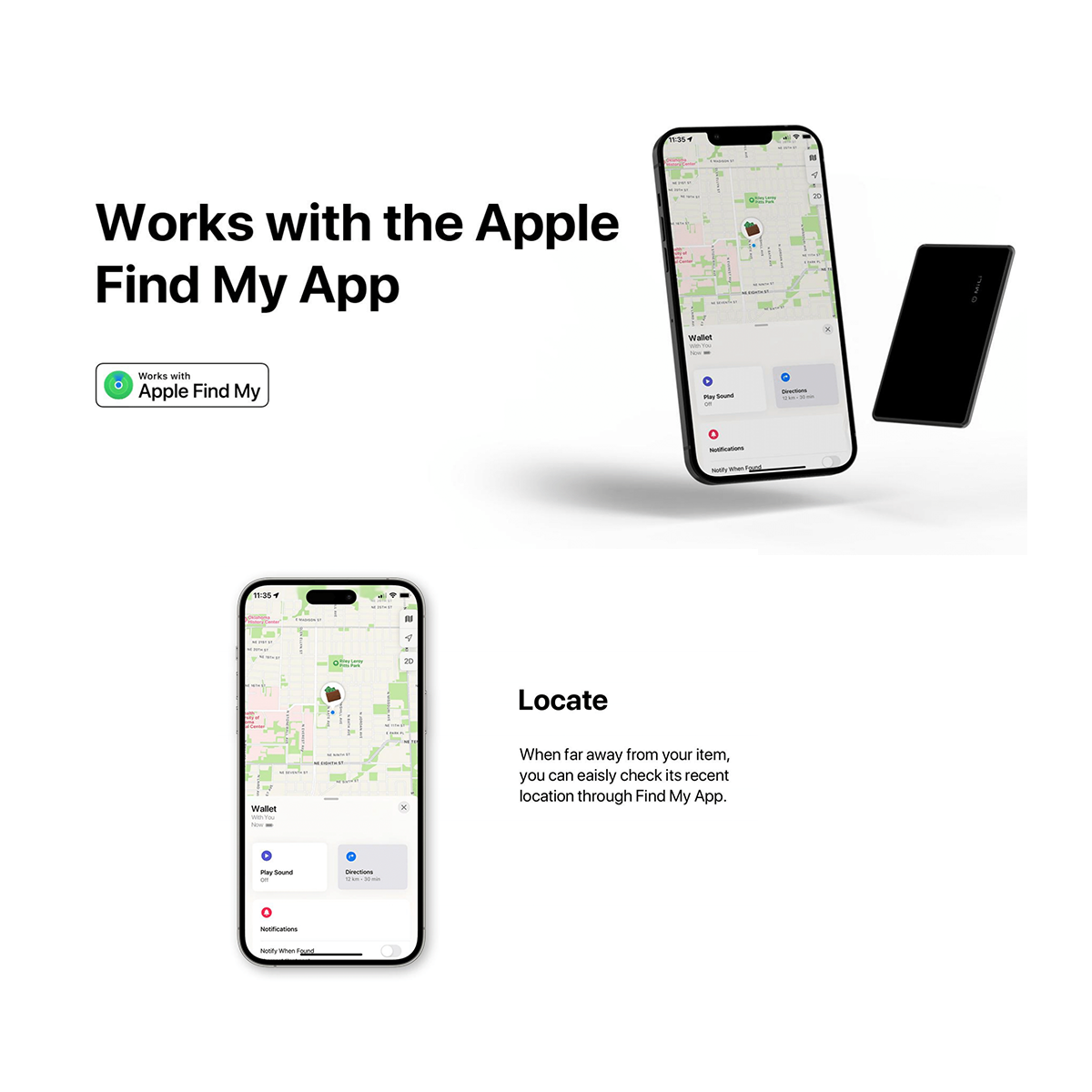 - Compatible with Find My Apple software with up to 160ft bluetooth range