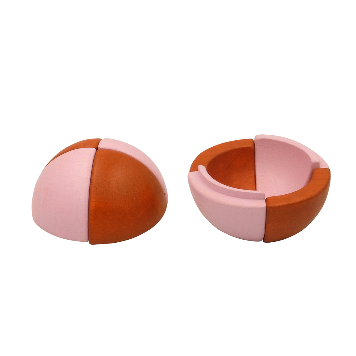 This checkered graphic sphere is a mini size container with a lid. The bottom and top pieces are secured by hidden interlocking teeth. Hide your small bits & bobs within the patched sphere and discreetly place it among other decorative objects on the shelves or tables.
