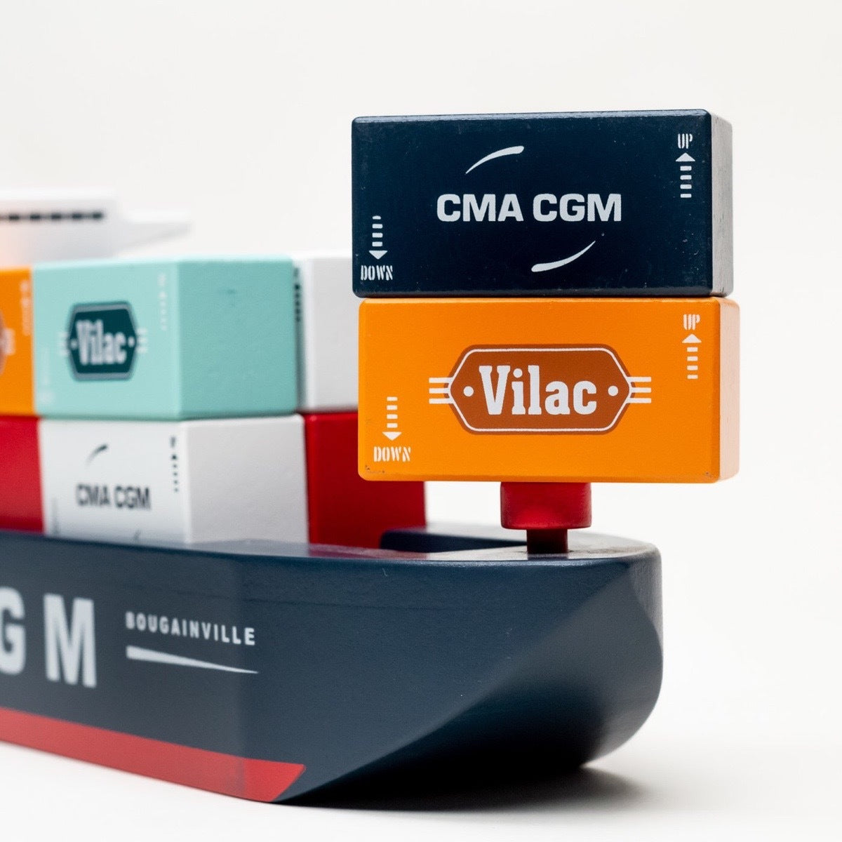 With a retro and colourful design, our Vilac Wooden Container Ship is a beautiful toy that will look striking on display, and provide hours of entertainment.
