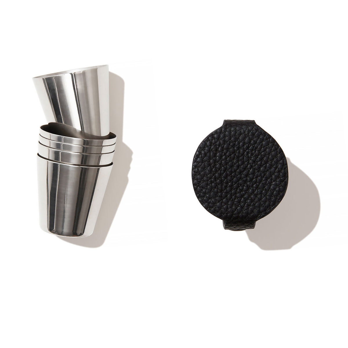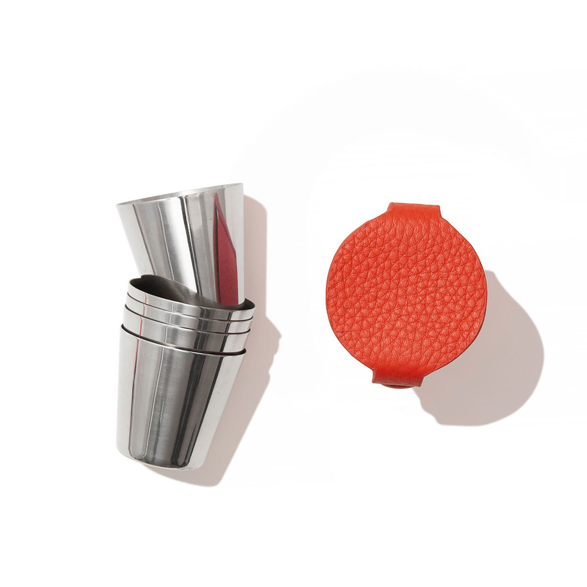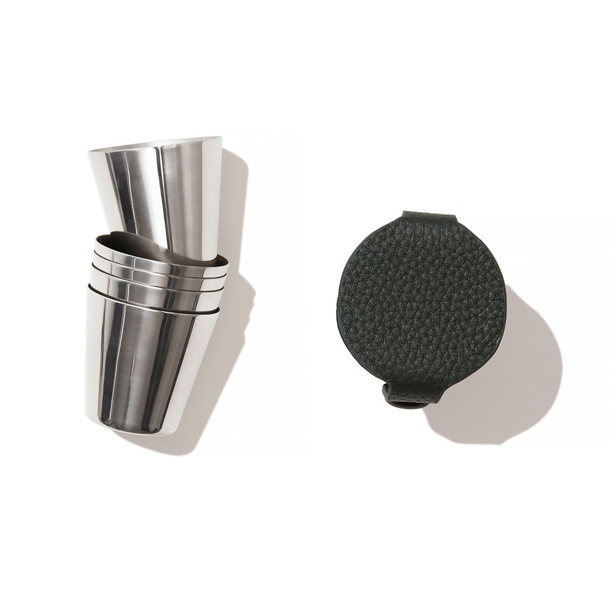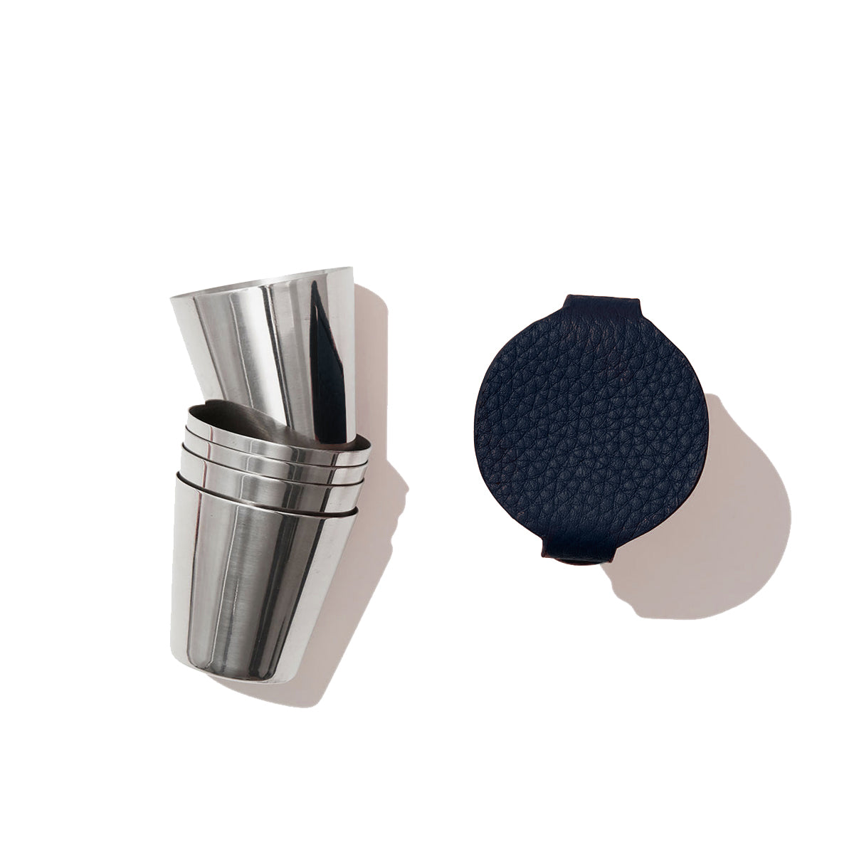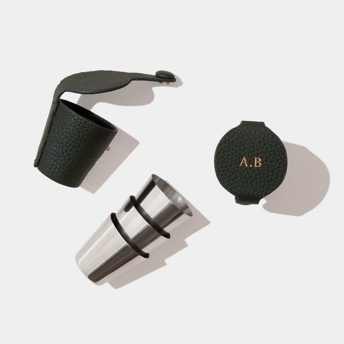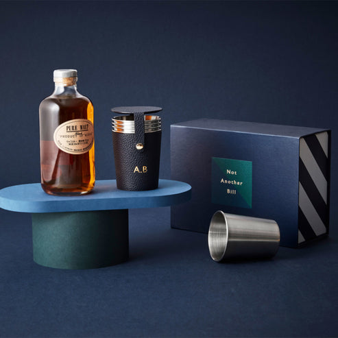 We've created the ultimate accompaniment to your travels and expeditions with our luxury milled leather case containing 4 stainless steel shot cups. This leather shot set makes for a beautiful gift which you can make to feel even more special with our in-house monogramming service.