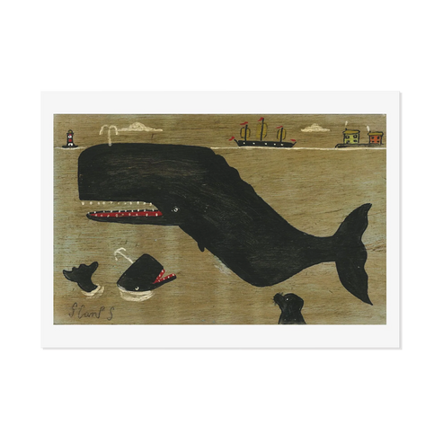 Steve Camps, a retired builder from Cornwall, began painting whales in 2023 after a lifetime of collecting vintage art and frames. Inspired by old whaling ship watercolours found on holiday, his work blends muted tones, maritime nostalgia, and unmistakable character.