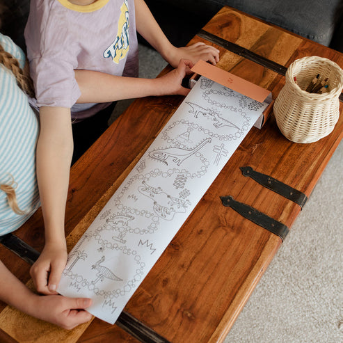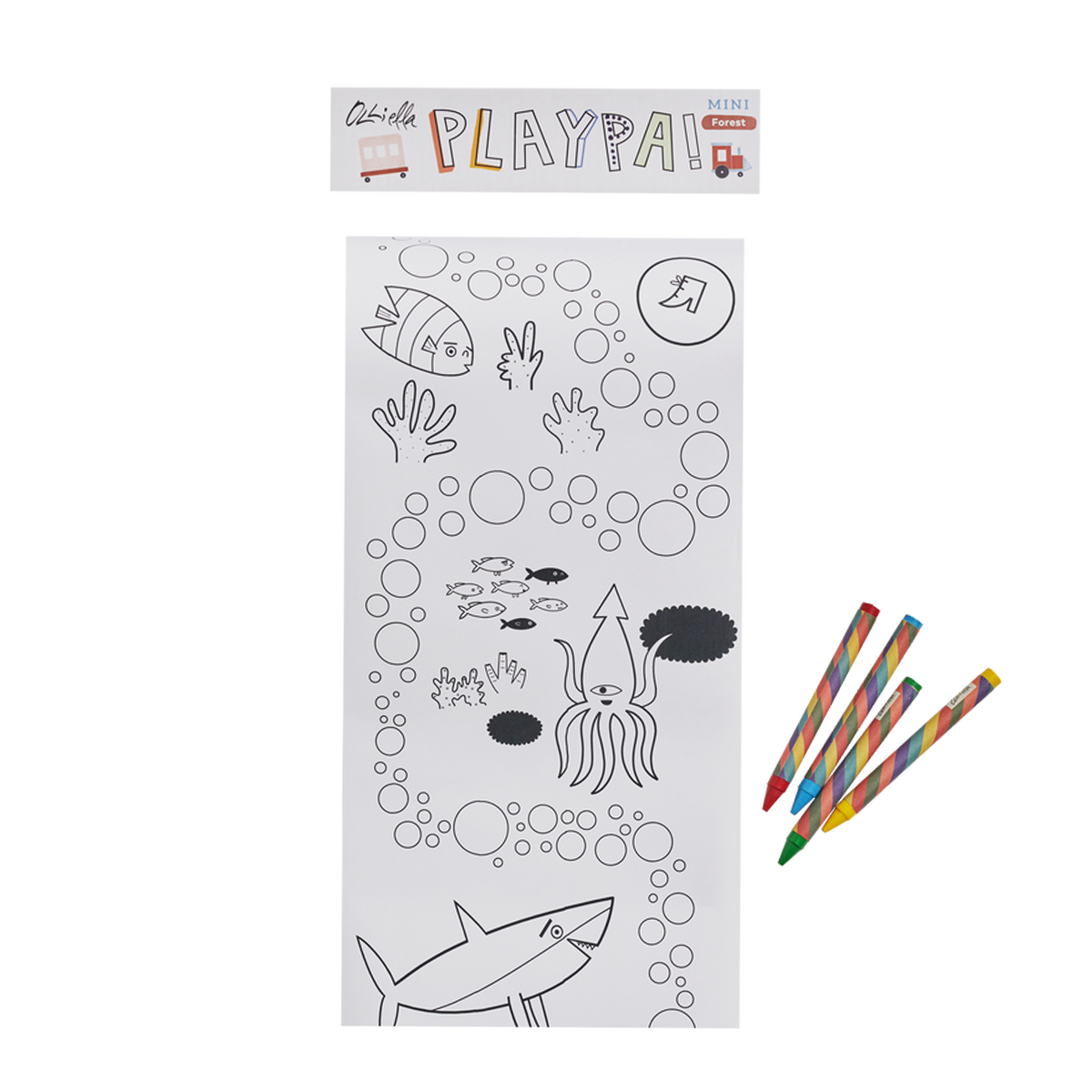 Designed to fit in a carry bag, the compact 14.5cm box includes a 2-metre roll printed with our exclusive Ocean design and four crayons. A revolutionary concept in creative play, there are sea creatures, coral forests, and a bubble trail for little artists to colour, paint, and imagine their own adventure – all while on the go!
