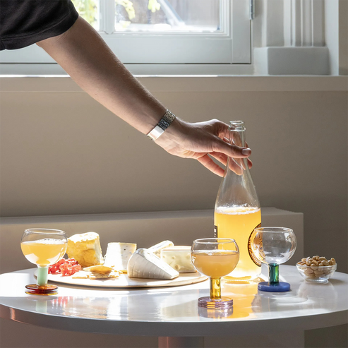 Inspired by classic bistro and cantine glasses, the glass cantine brings timeless charm to your table. When caught by a little sunshine, they create a beautiful, special effect. Crafted from coloured borosilicate glass, each piece is durable and designed for everyday use.