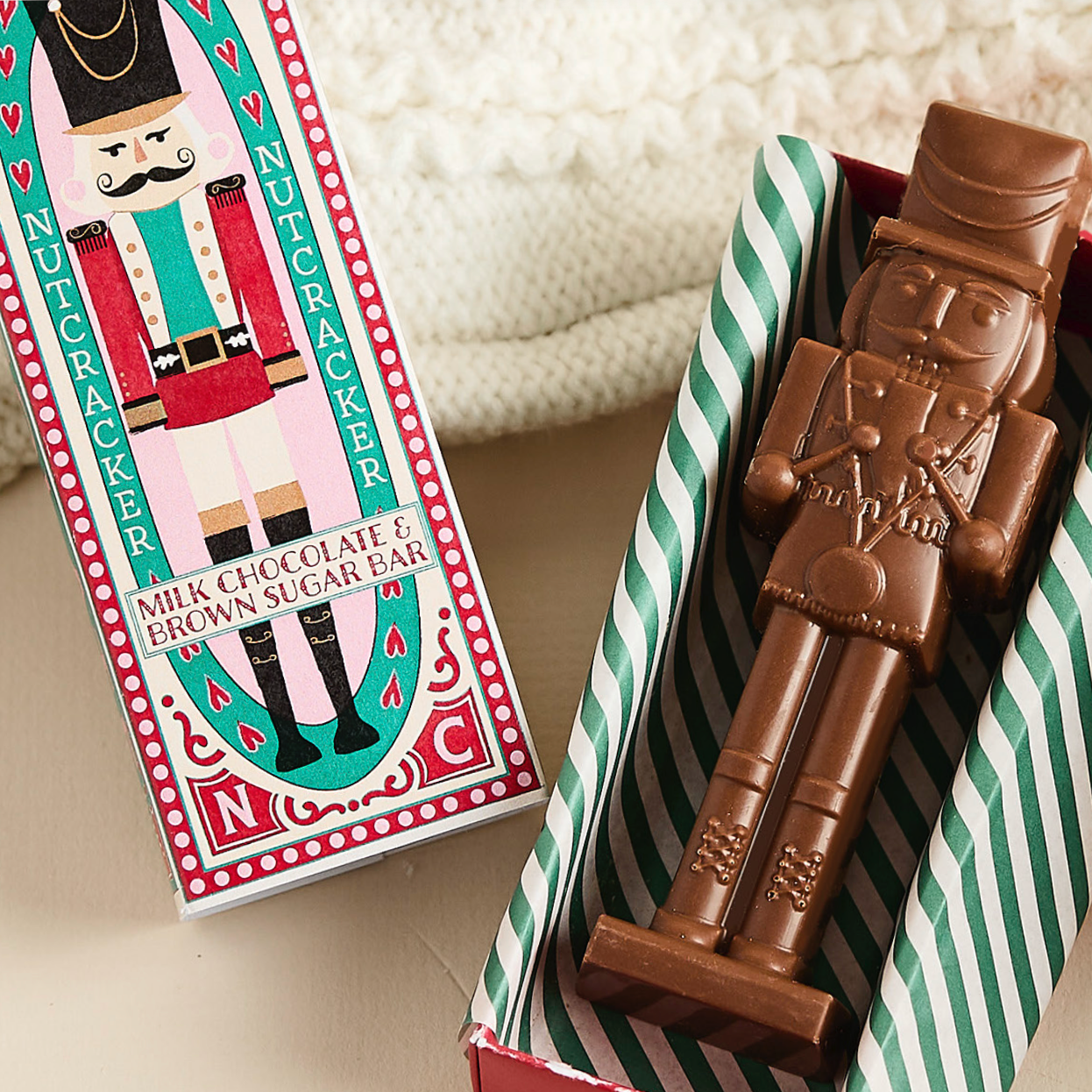 Our beautiful little Nutcracker figure is made from solid milk chocolate. Snuggled in to tissue paper and a playful, beautifully illustrated matchbox. This little Christmas gift is that perfect extra chocolaty treat for your loved one this festive season.
