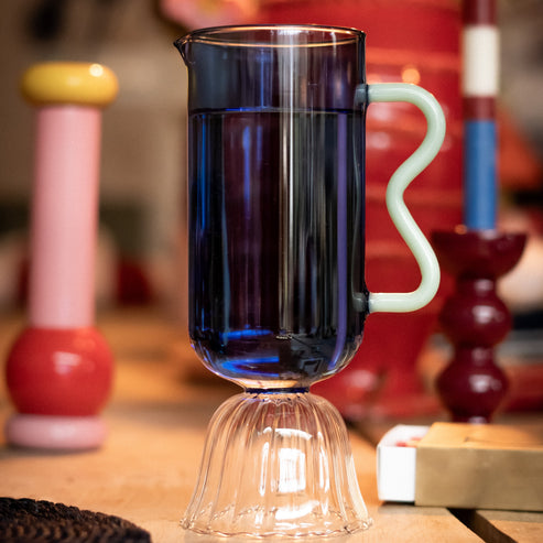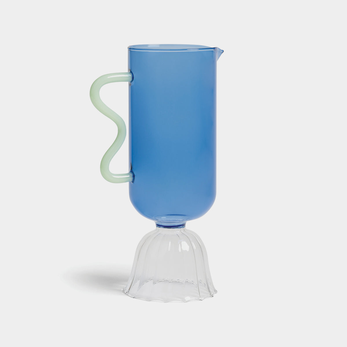 The tulip carafe is designed to steal the show on your table. Curved and wavy shapes combine with clear blue and green tones to give the carafe an elegant look. Pour your favourite drink in style with this carafe.