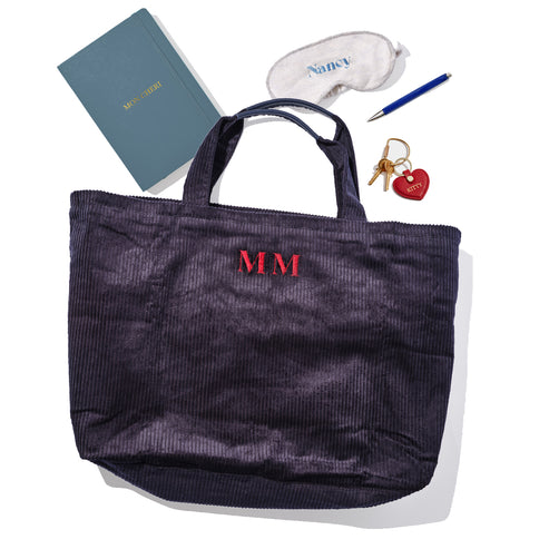 Made from soft navy corduroy with a large pocket there is plenty of room for your belongings whilst being enviously stylish.