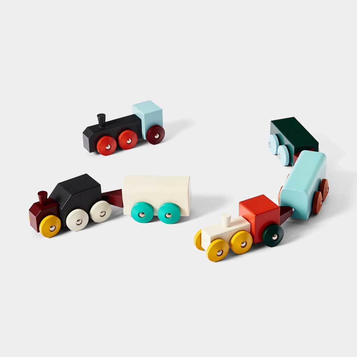 Hovers Trains are crafted from contemporary shapes and painted in bright colours—a simple design that celebrates locomotives and the innovation, perseverance, and creativity they brought to the world.