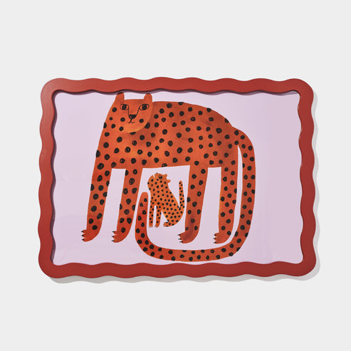 Expressing a sense of security and the cherished love of our closest family, Aniek Bartels created Leopard Family. Fun and bright, the composition features a mother and child leopard with distinct black spots, set against a popping pink backdrop.