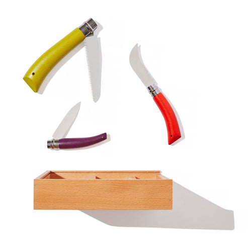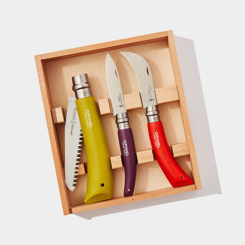 Prune your plants to perfection with this 3 piece Opinel coloured garden set. With excellent quality blades, these tools will help you spruce up your garden with ease. Bring the legendary Opinel quality to your garden.