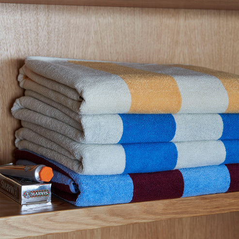 Crafted in a soft, absorbent cotton, HAY’s frotté striped towel is the perfect beach accompaniment this summer. Available in three bold colour combinations - our London Studio can also personalise it, to truly make the most perfect gift.