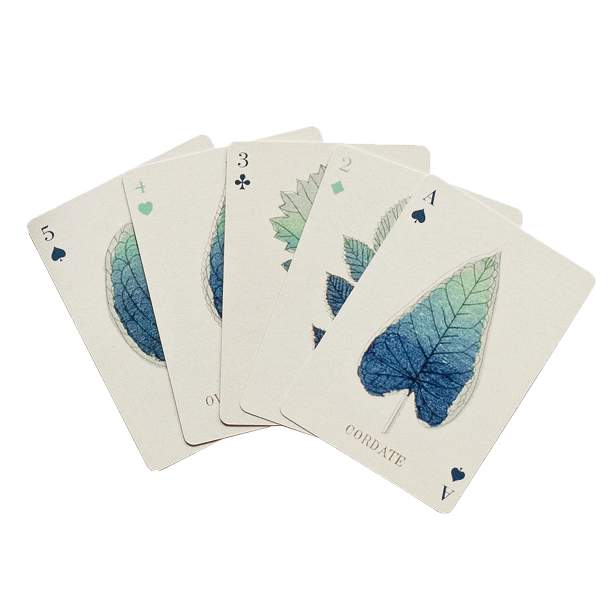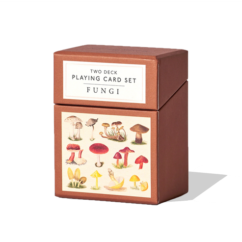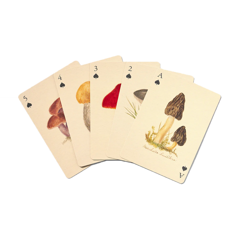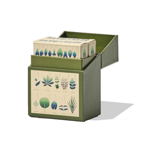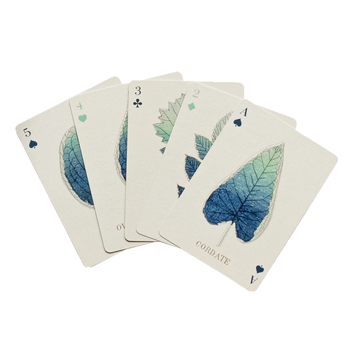Fungi set of 2 playing cards features species from England and Wales dating back to 1860 & Shapes of Leaves features unique artwork reproduced from illustrations by a Japanese artist first published in a book about botany in 1873