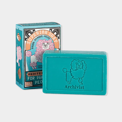 Archivist has teamed up with an incredibly talented and nose-trusted soap maker in the dreamy land of Provence, France to bring you Savon d’Archivist. From Mediterranean, warming orange and cinnamon and the escapism of Provence in a intensely scented soap, packaged with our wonderfully bonkers obsession with poodles!