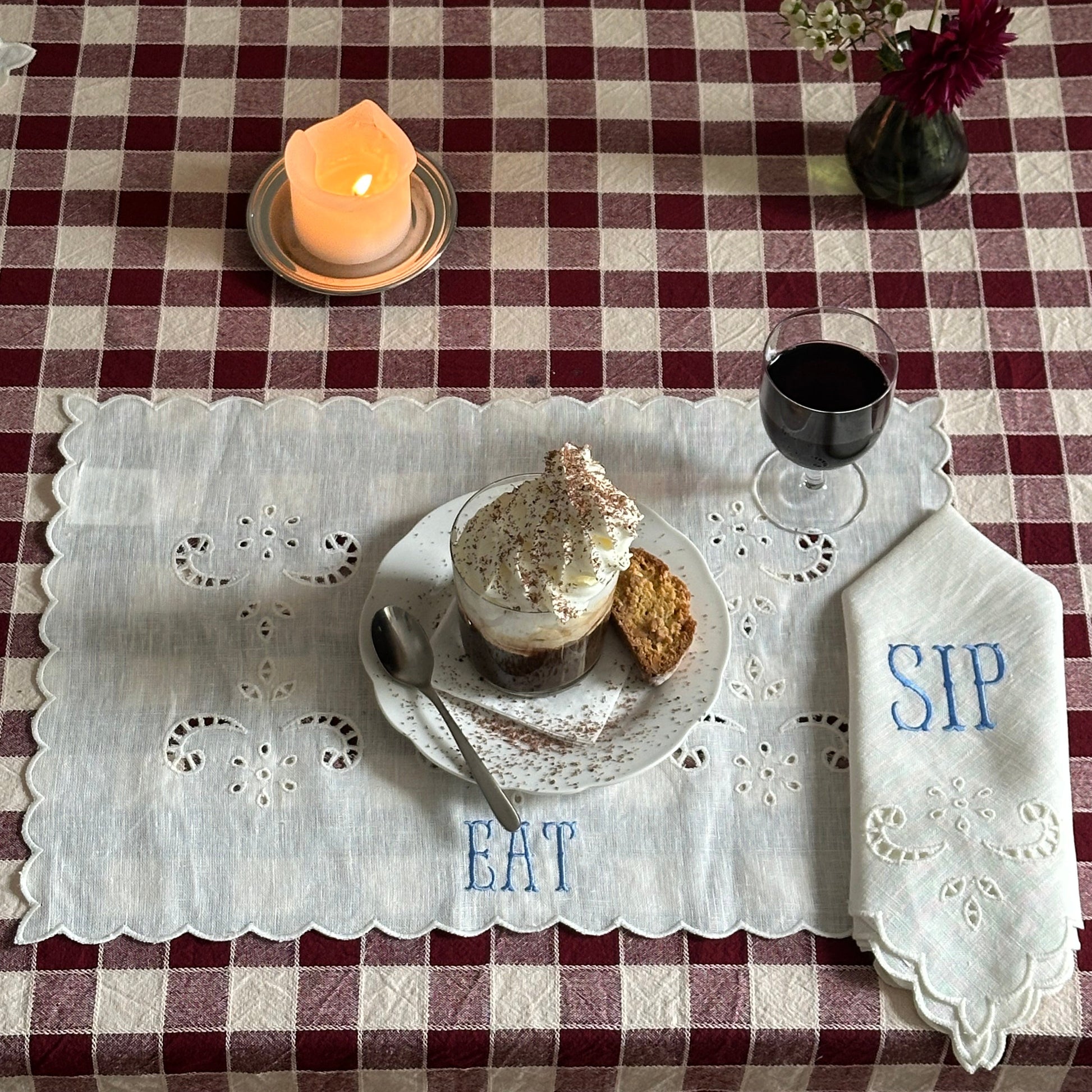 Crafted from fine linen, these placemats feature traditional Broderie Anglaise cutwork, a white-on-white embroidery loved in 19th-century England. Their timeless design lends an heirloom quality to your table, while the option of a personalised embroidered monogram makes them meaningful gifts for weddings, holidays, or other special gatherings.