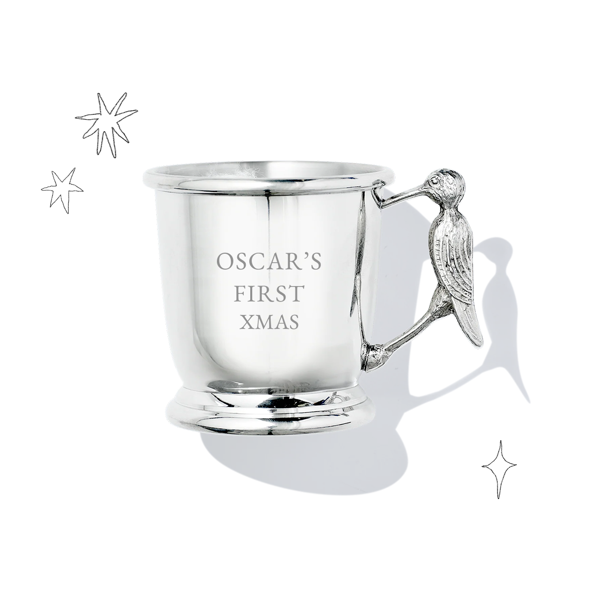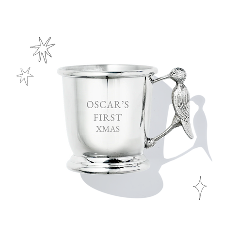 The perfect keepsake gift for a new baby or christening, designed with the iconic stork marking the birth of a child and the perfect size for baby hands. Engrave with the baby's name and/or date of birth.