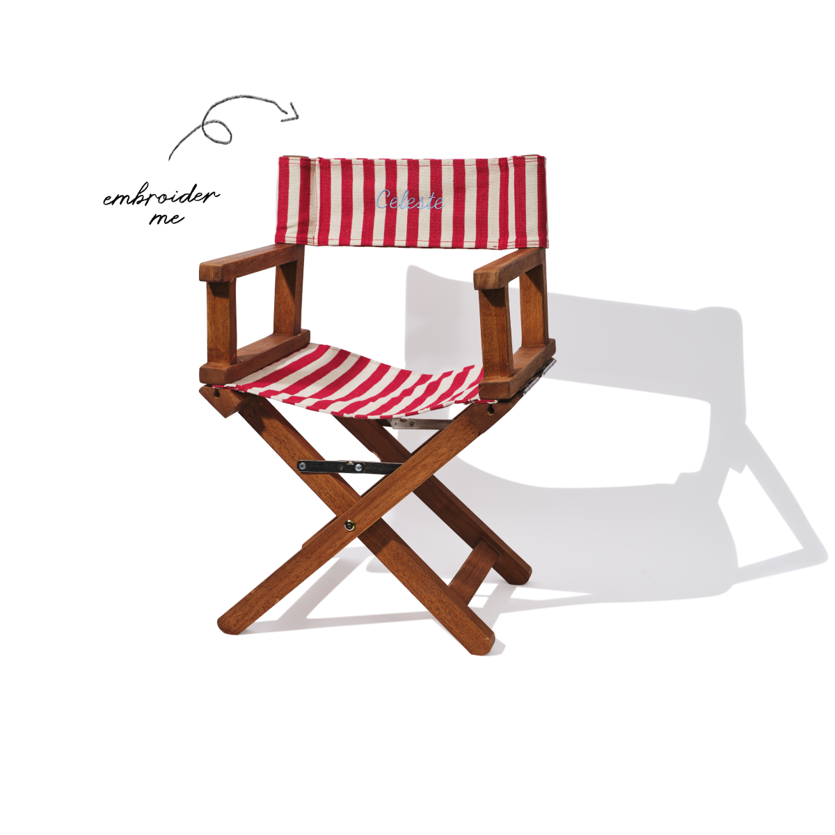 This Kids Chair is perfect for imaginative play, available in two adorable stripe patterns and the option to personalise the back. Little ones can enjoy their own mini chairs just like grown ups while pretending to be the director of the next Hollywood film or setting up a teddy-bear picnic.