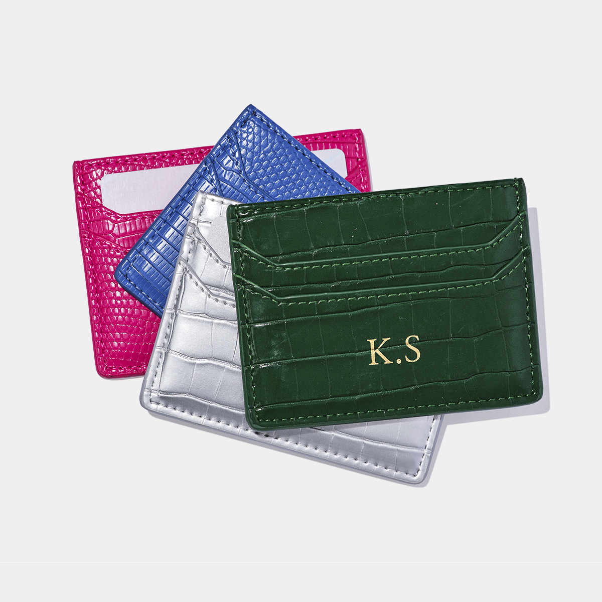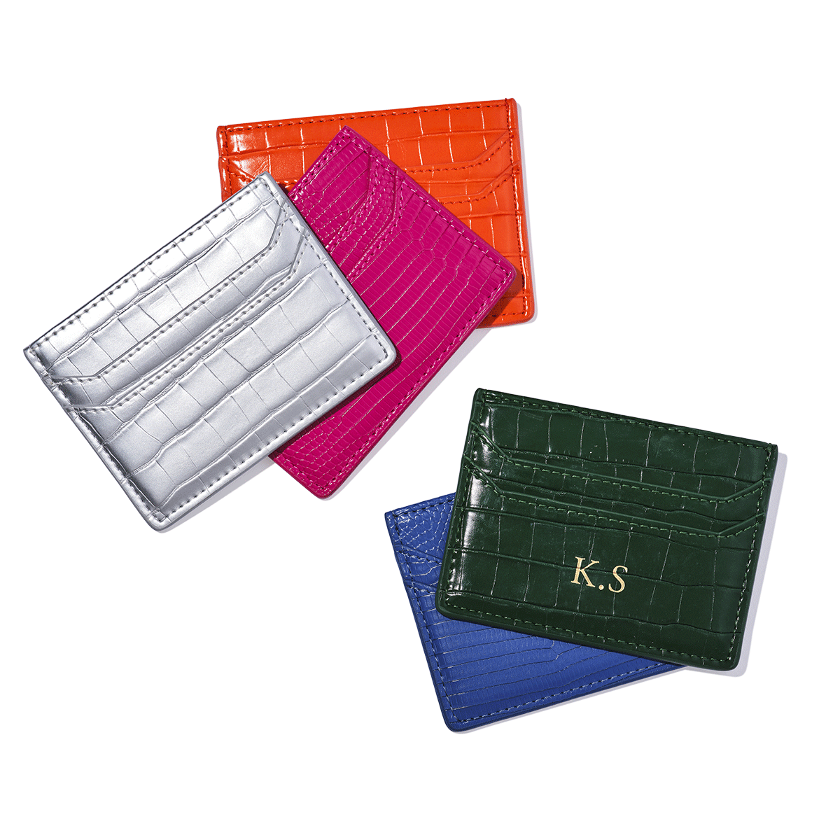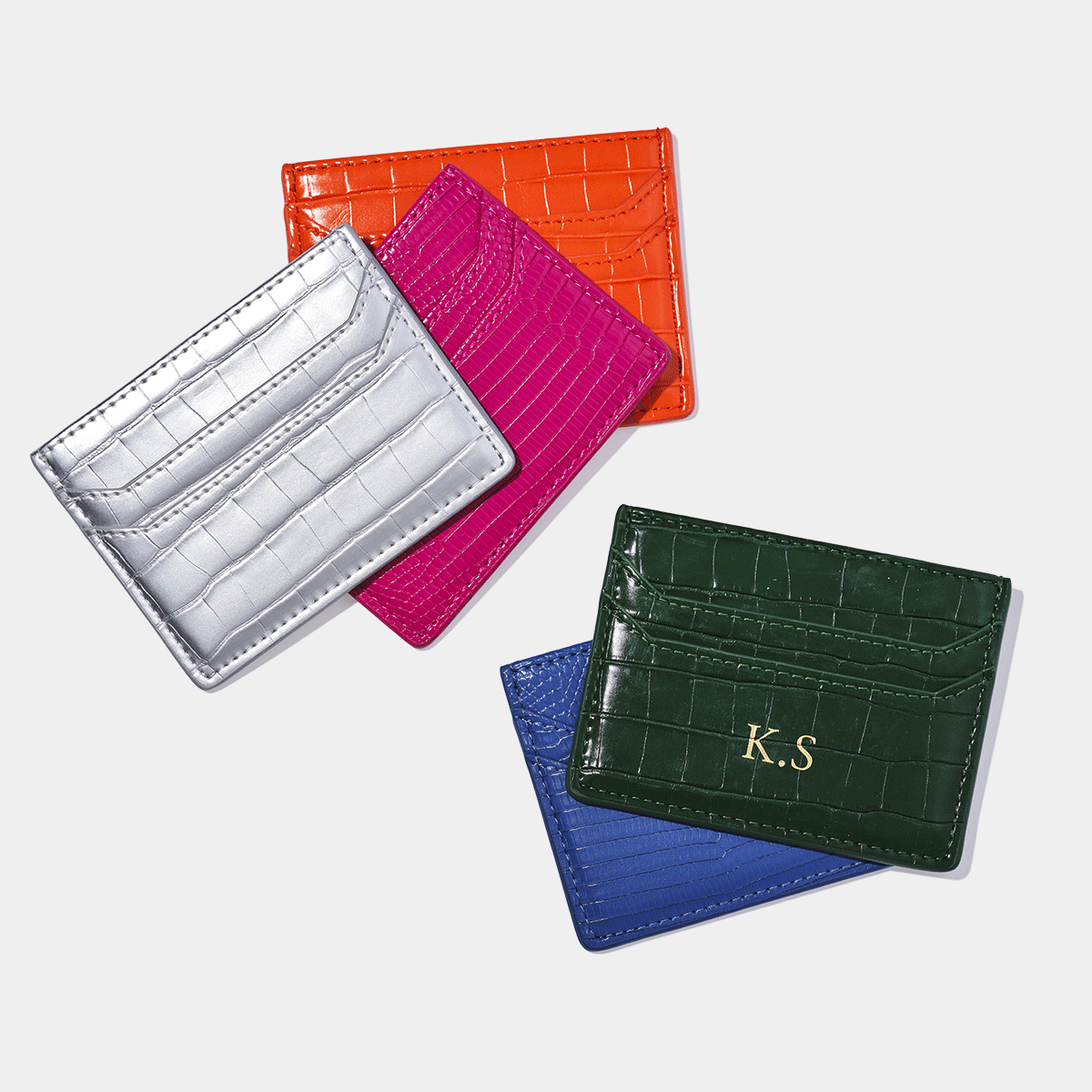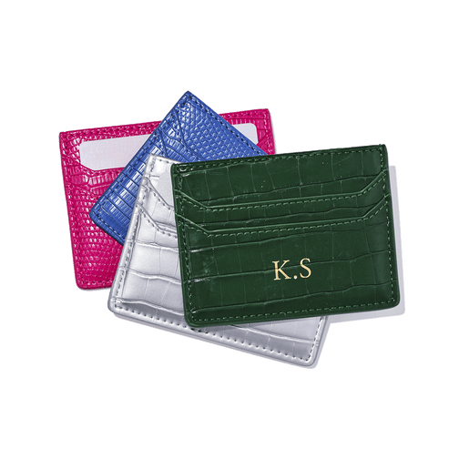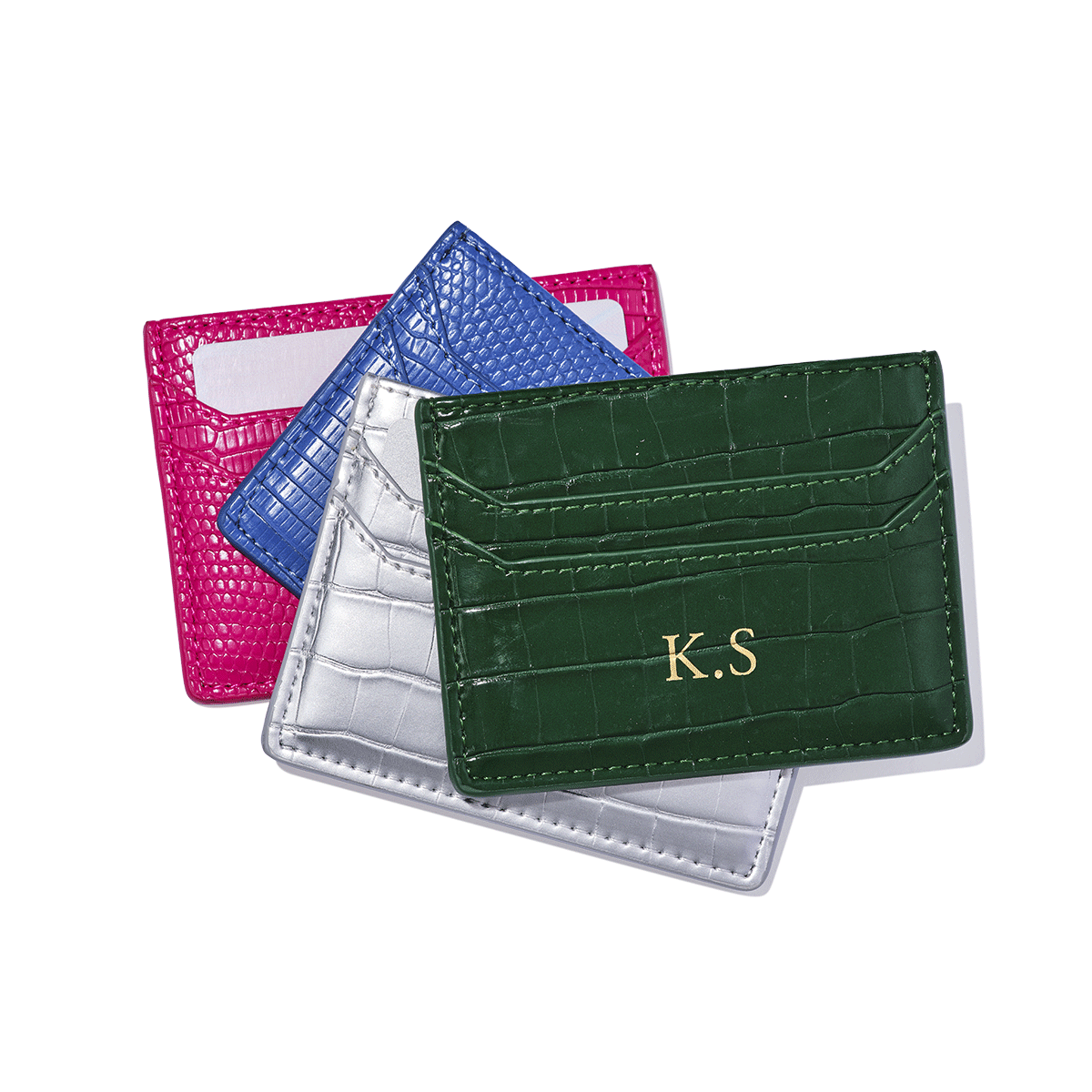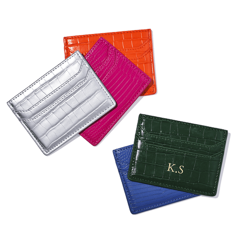 Discover our new Croc and Lizard textures for both style and functionality. These colourful wallets feature 3 slots and a central compartment for receipts or folded notes. For a touch of personality, make your cardholder unique with our monogramming service. Each wallet is made from approximately 0.5 recycled plastic bottles.