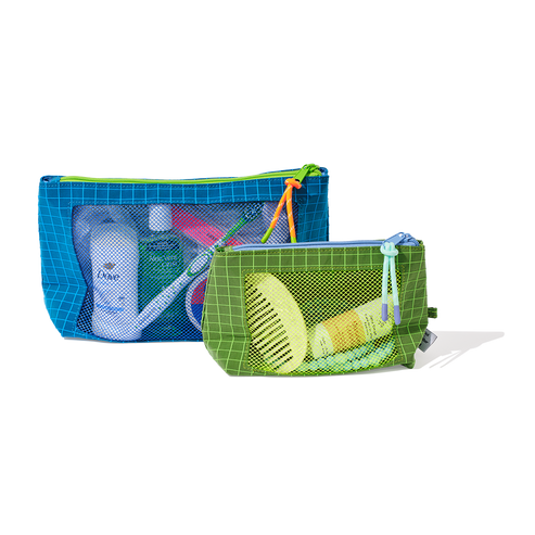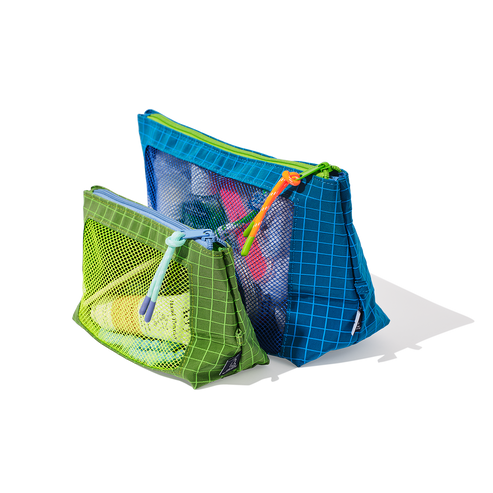 Stay organised on-the-go with these versatile Travel Pouches, available in two sizes and bold contrasting colours. Made from durable ripstop nylon crafted from recycled plastic bottles, they’re perfect for storing everything from bathroom essentials to tech gear and wires. A mesh window panel lets you easily see what’s inside without unpacking.