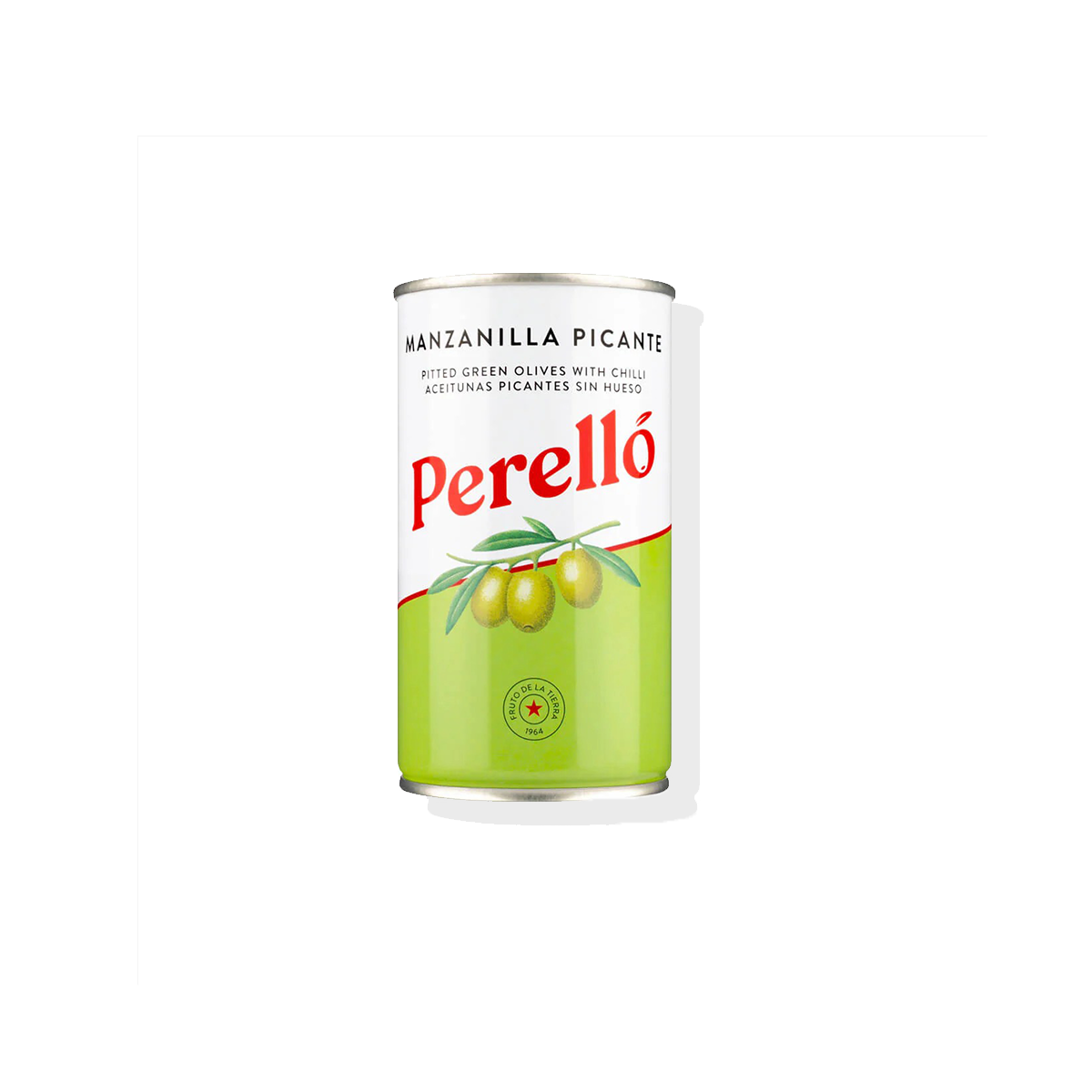 These Gordal olives are green, crisp and fleshy with a touch of heat from the guindilla chillies in the marinade.