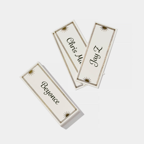 What better way to show your guest where to sit, with their name written on a beautifully gilded place card. This pack of 50 cards are designed to be used alongside our Personalised Table Planners.