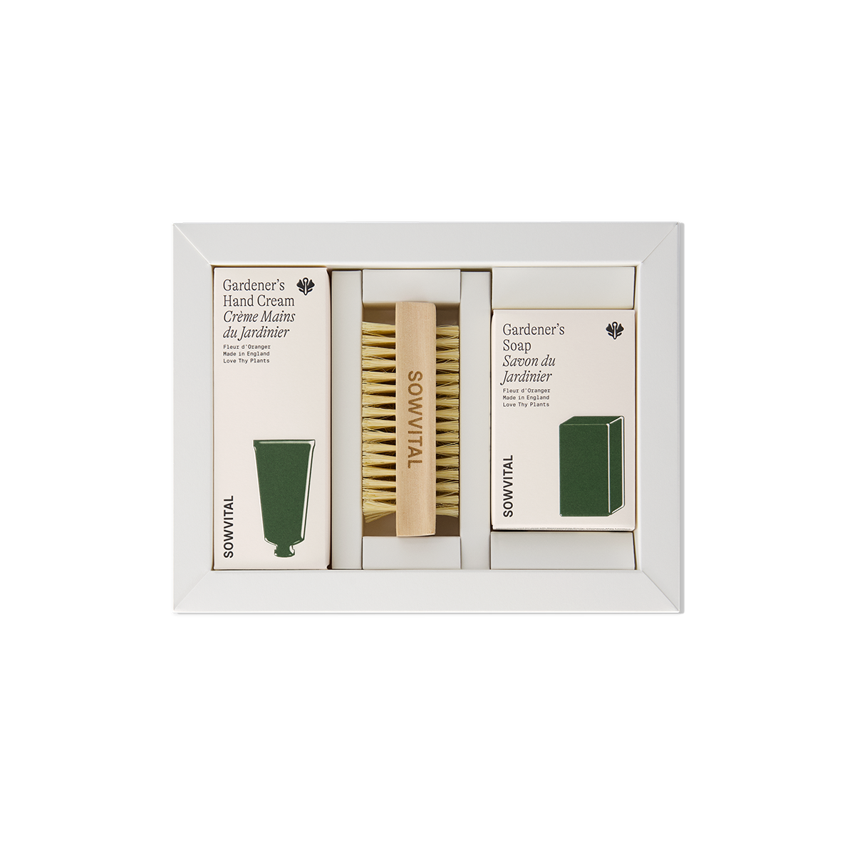 - Includes: Gardener's Soap, Nail Brush, and Hand Cream