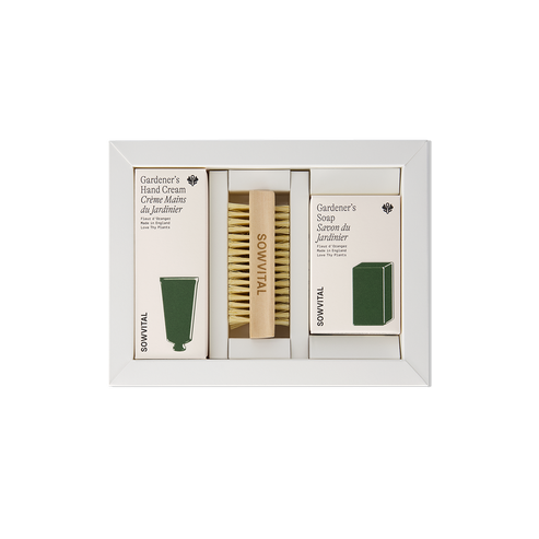 The Gardener's Handcare Kit is the perfect bundle of moisturising and repairing hand care products. This gift set includes the Gardener's Soap, Nail Brush, and Hand Cream, infused with Sowvital's fleur d'oranger fragrance. Made in England with shea butter, it's the perfect kit for cleaning and restoring hardworking hands after gardening.