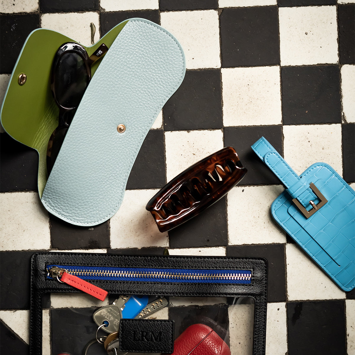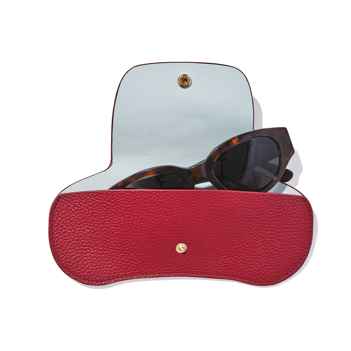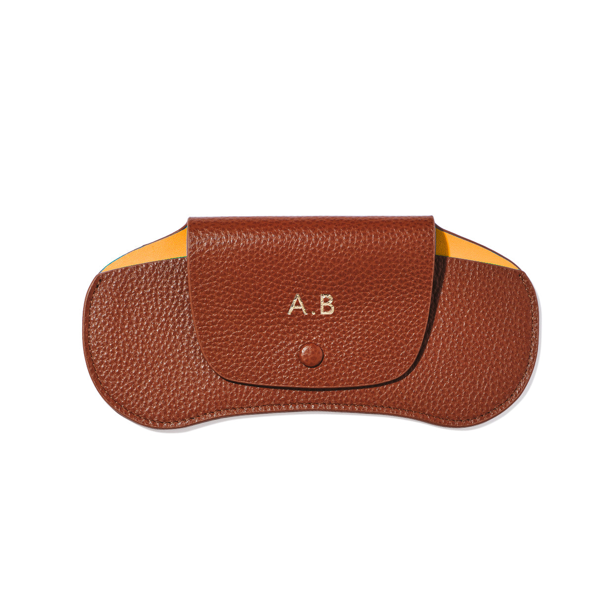 This luxurious leather case is designed for style and protection of your glasses. It features contrasting interior colours for a unique look and a kidney-shaped design that offers a secure fit and protection from dust and scratches. It can also be personalised with your initials.