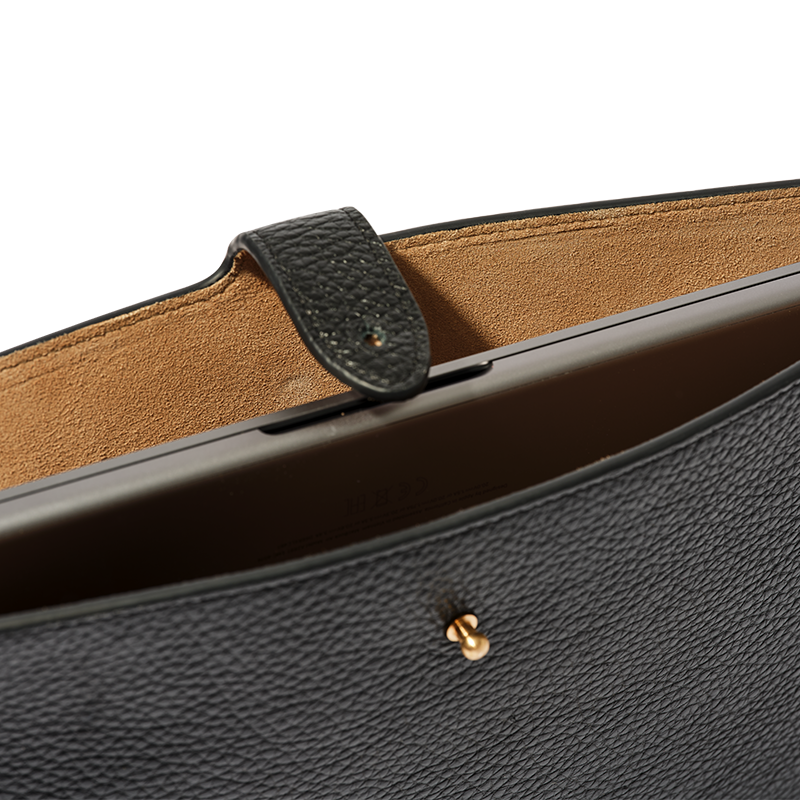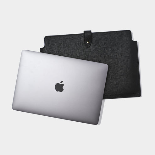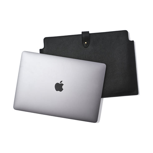 Protect your laptop and take it with you wherever you go with this sleek leather laptop sleeve. Crafted with durable leather, this black sleeve provides ultimate protection while on-the-go. Its streamlined design ensures a snug fit, keeping your laptop secure and protected. Available for 13" and 15" laptops.