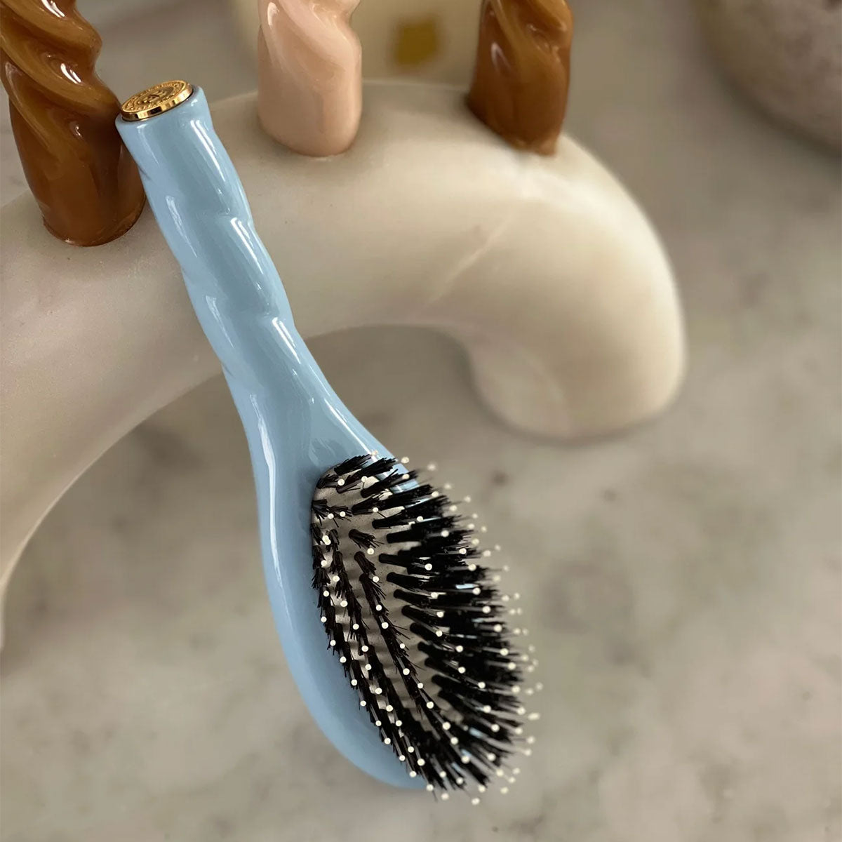 Renowned for its massaging properties, the Essential Soft Petite Brush is wonderfully soft. Thanks to its boar bristles and nylon fibers, it brings softness and comfort to normal and thick hair. These petite hairbrushes are the perfect Christening present or first hairbrush for little ones.