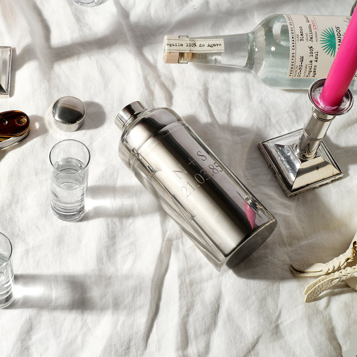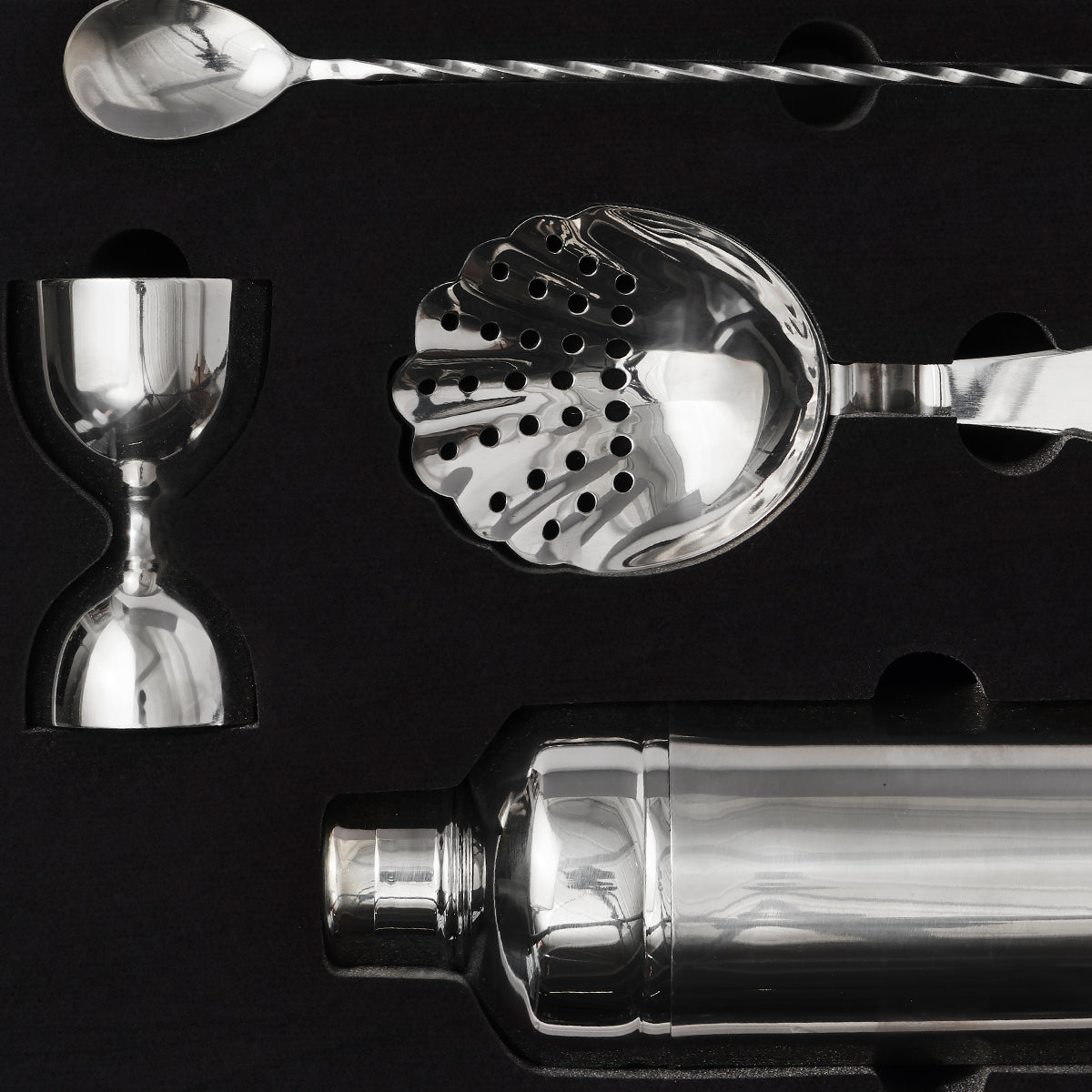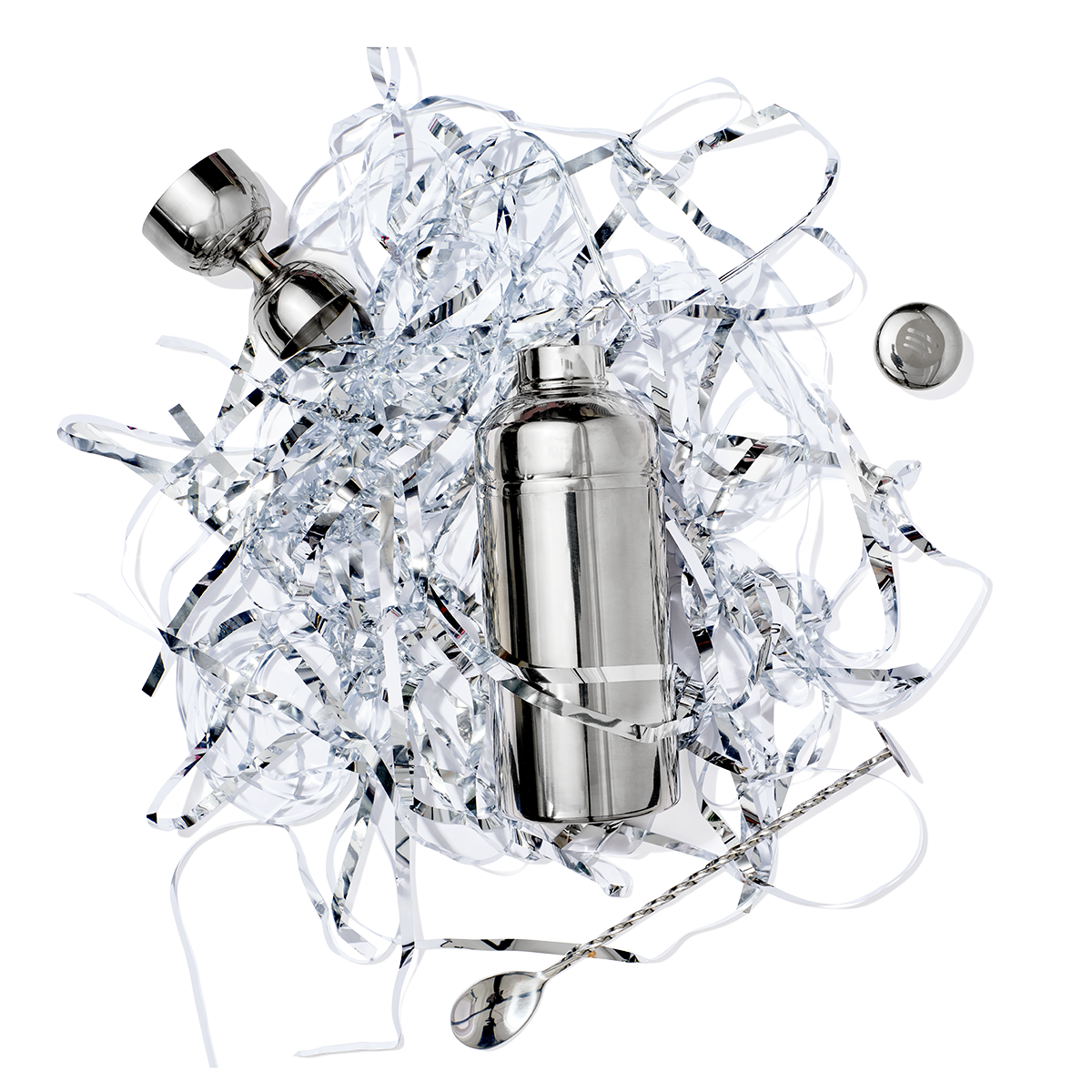 • Dimensions: Cocktail Shaker with lid H 20cm x W 8cm | Spoon stirrer: 23cm | Strainer: 17cm