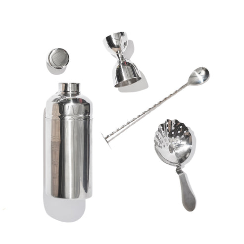 • Contains: Double and single shot measurer, Cocktail Shaker, Spoon stirrer, Strainer