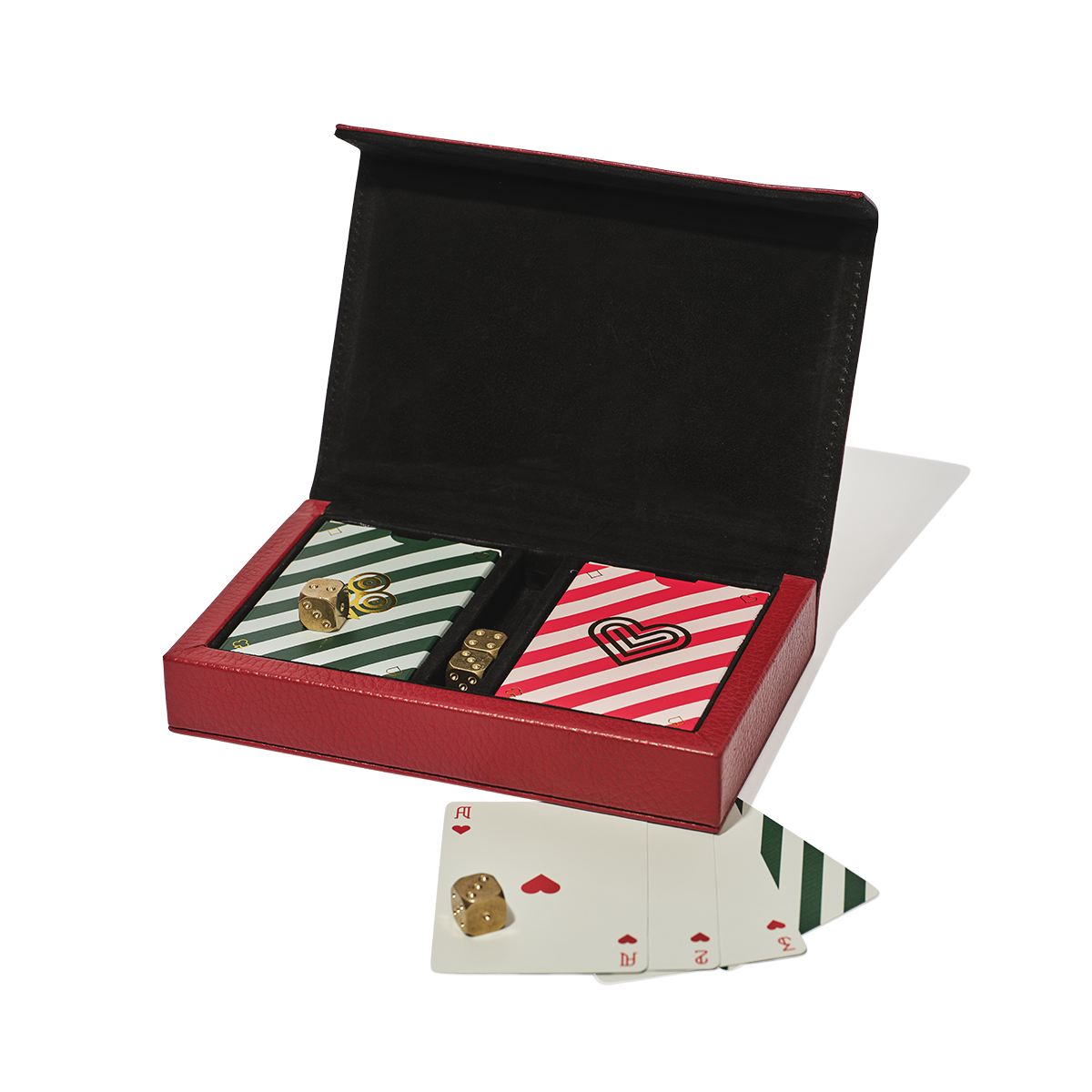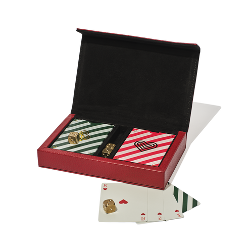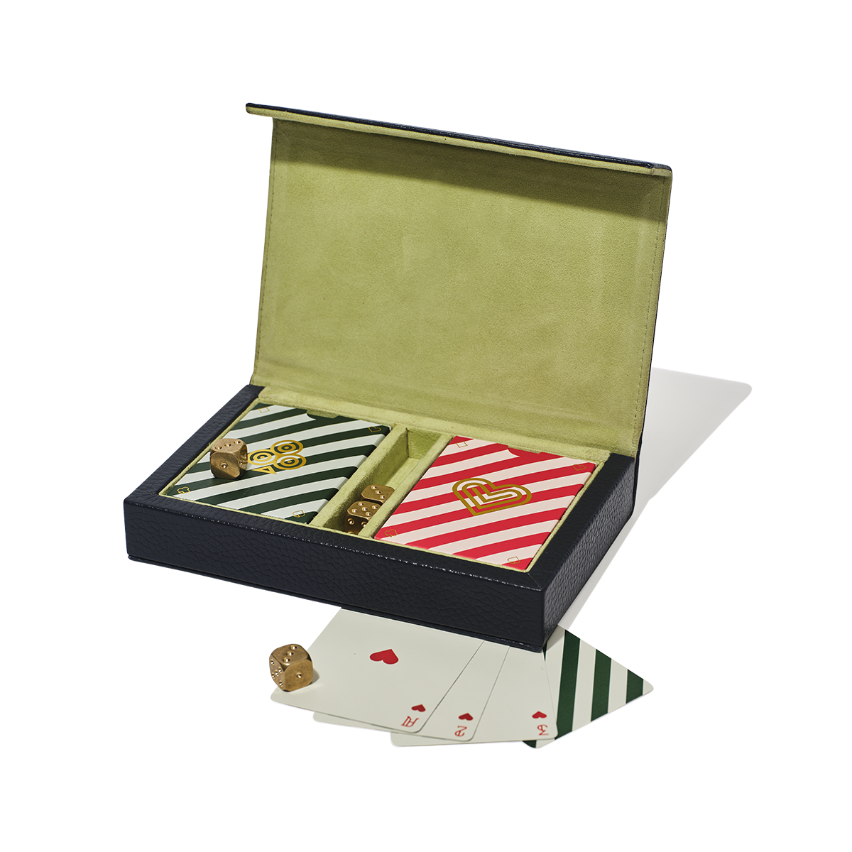 Complete with two decks of playing cards in our signature stripe design and four solid brass dice, this would make the perfect gift for anyone that loves that speakeasy vibe.