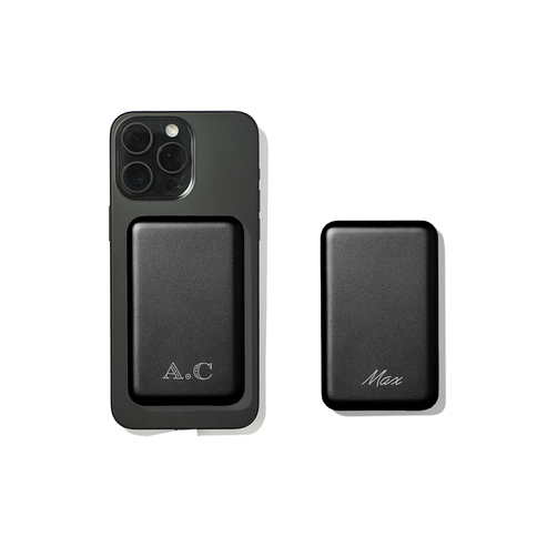 This ultra powerful magsafe 10,000maH powerbank gives a powerful charge to your devices. It attaches to iPhones via Magsafe. It also charges android and other devices via a USB charging cables. The powerbank has a metal casing which can be engraved with names and initials. Our top recommended gift this year. Comes in gift box.
