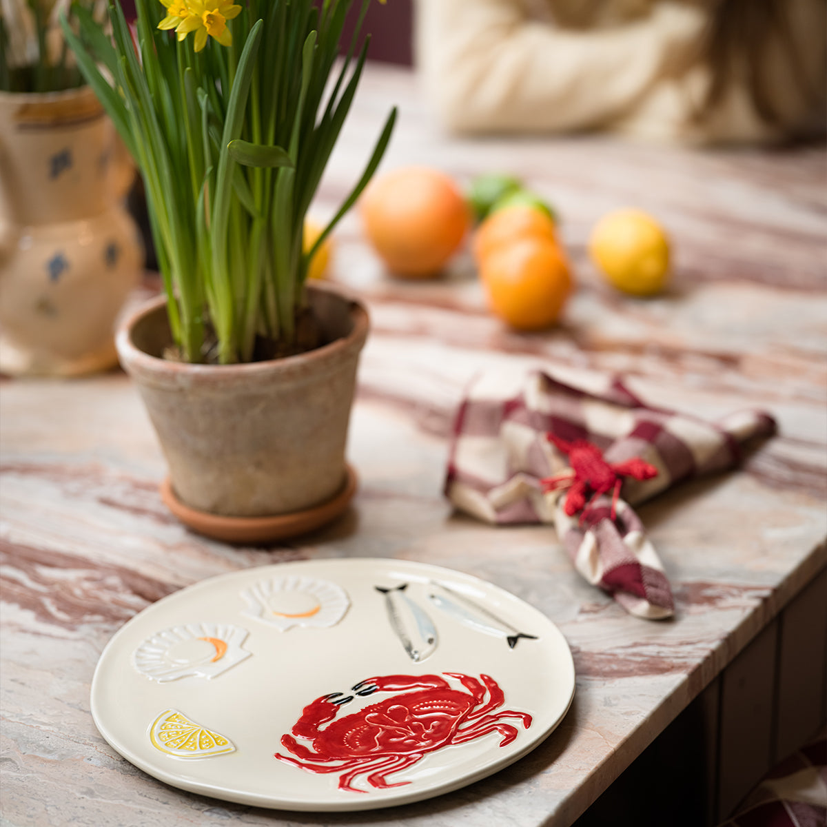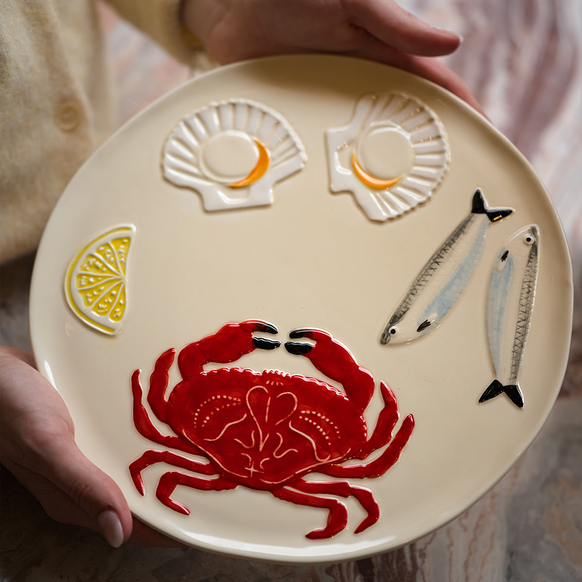 Experience the beauty of the sea every time you eat with Platter de la Mer Crab. Hand-painted with a unique seafood design, this platter will be a gorgeous addition to your table setting. Enjoy fresh-caught flavour in style with Platter de la Mer Crab.