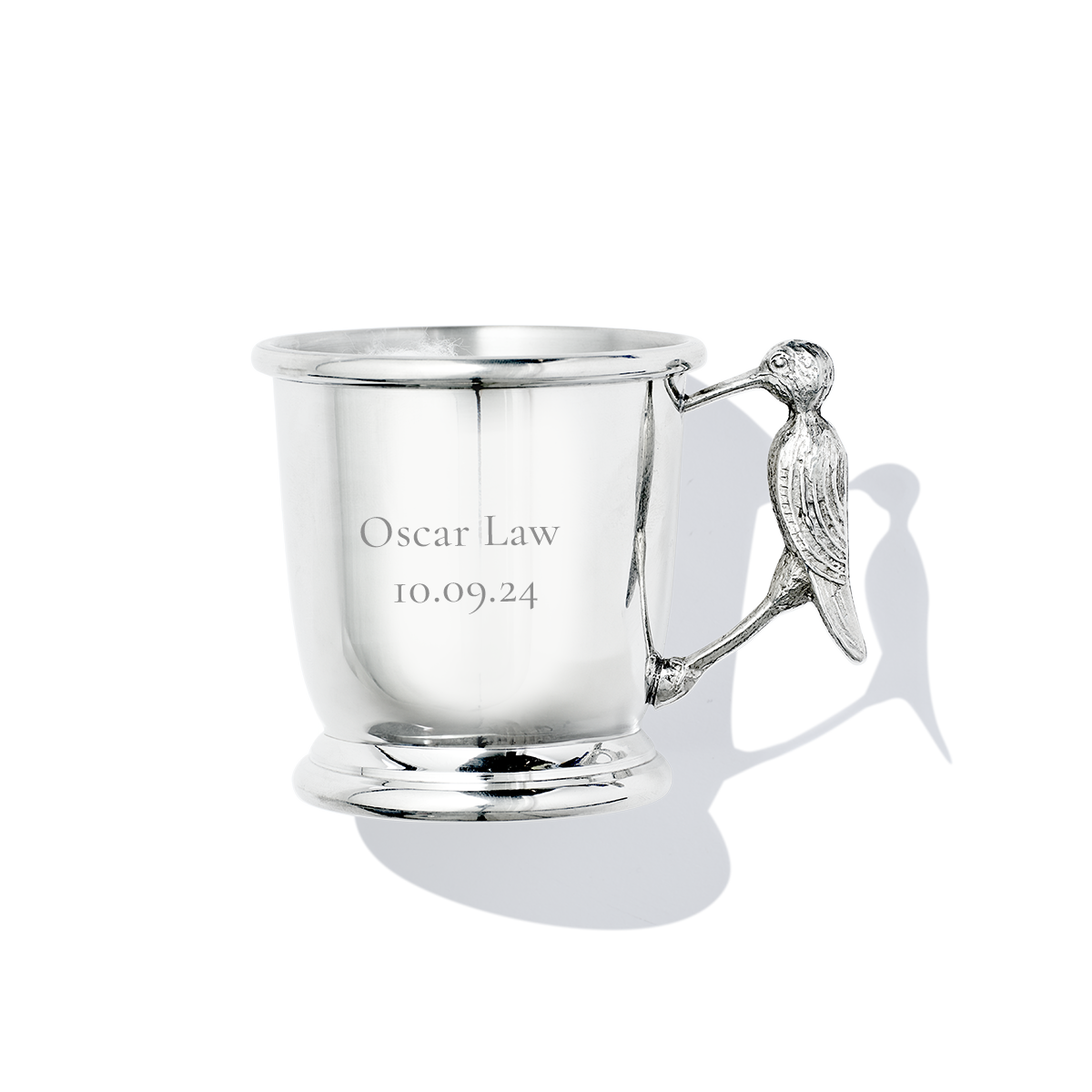 The perfect keepsake gift for a new baby or christening, designed with the iconic stork marking the birth of a child and the perfect size for baby hands. Engrave with the baby's name and/or date of birth.