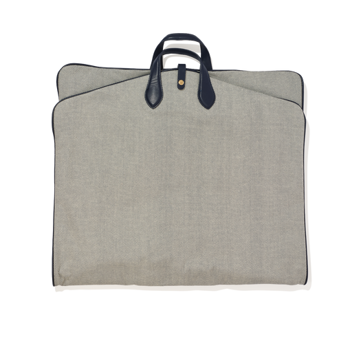 Upgrade your travel game with our stylish garment bags, crafted from high-quality woven canvas. This practical bag features handles for effortless carrying and an eyelet that can accommodate your hanger. The bag's woven cotton canvas and leather trim create a sophisticated look. What's more, you can add personalisation – such as a name, initials or even a memorable date.