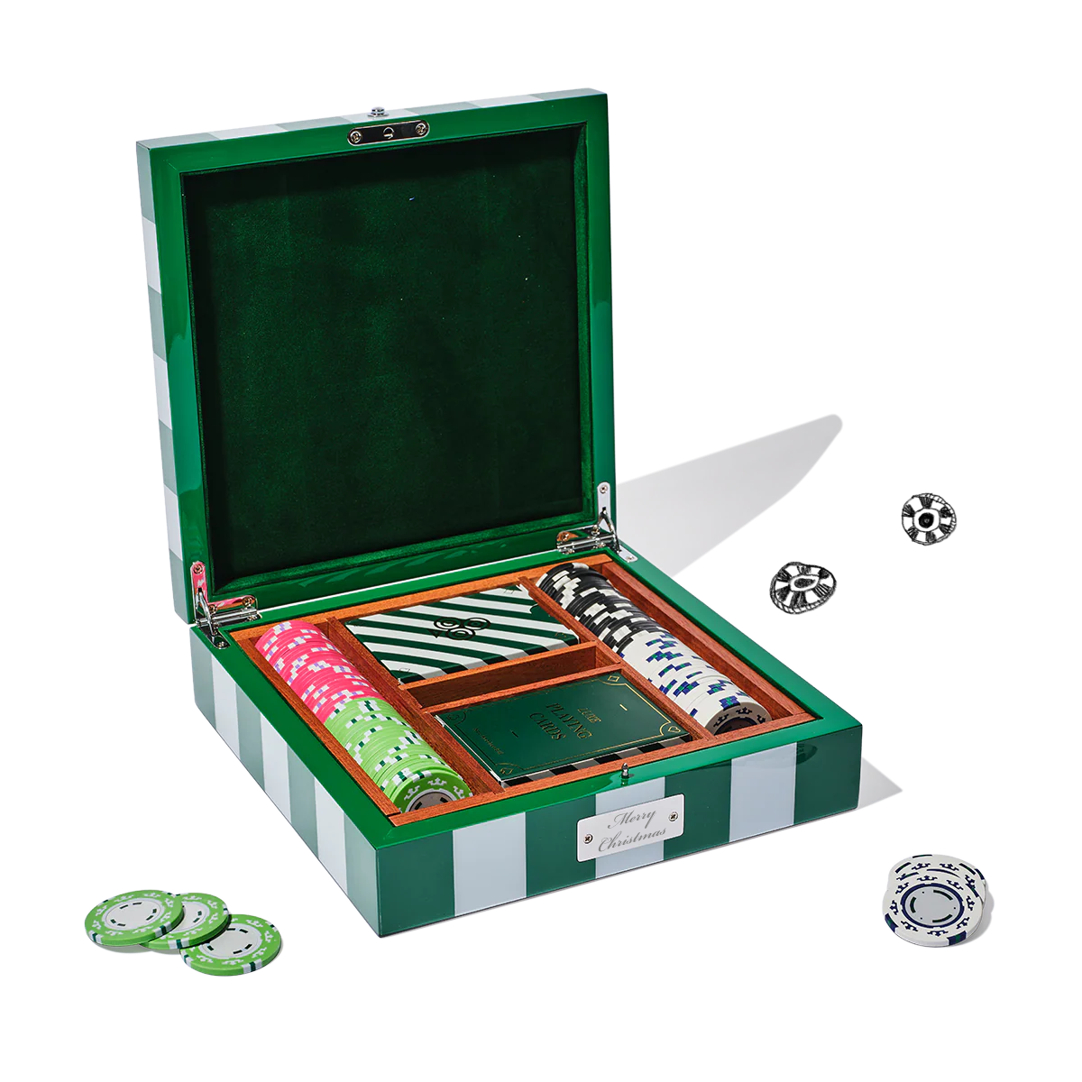 Make a bold statement on games night with our Lacquer Poker Set, housed in a high-gloss case topped with a striking checkerboard pattern. The velvet-lined interior and thoughtful craftsmanship elevate every hand you play. Both functional and decorative, it makes an exceptional gift for game lovers and design enthusiasts alike.