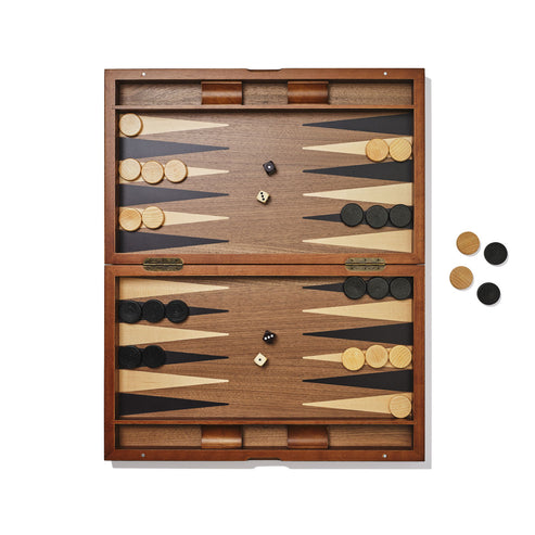 This 3-in-1 game board set features Hevea and Maple wood with a cream-coloured finish. Backgammon and chess playing fields boast inlaid detail, while a stoneholder provides storage for pieces and dice. Engrave a meaningful date, name, or phrase for a special gift or personal memento.