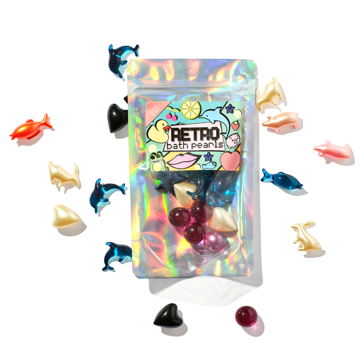 Transport yourself back to the 90's with this nostalgic selection of bath pearls. Revel in a delightful array of whimsical shapes—animals, stars, hearts, and classic pearls—each imbued with various enticing scents.