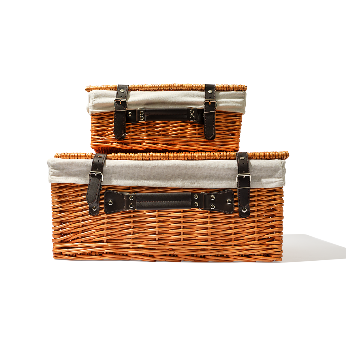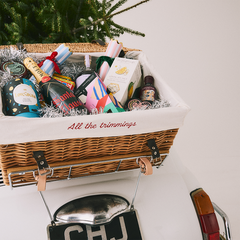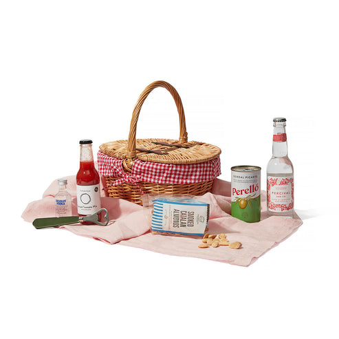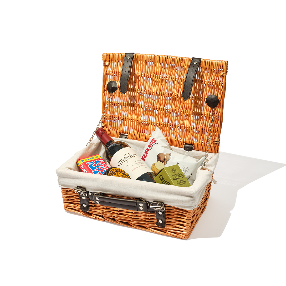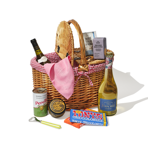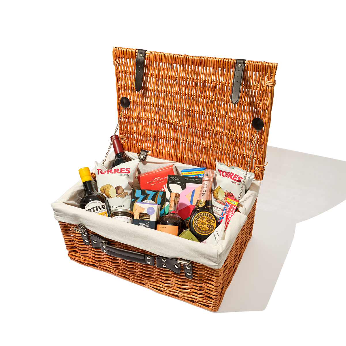Personalise and fill your own hamper with a selection of premium snacks, ready-to-drink cocktails, cheese, crackers, and wine. Add luxurious extras like bottle openers, napkins and picnic blankets. Our team will expertly pack your items into the packaging of your choice, which can be embroidered with a name or special date.