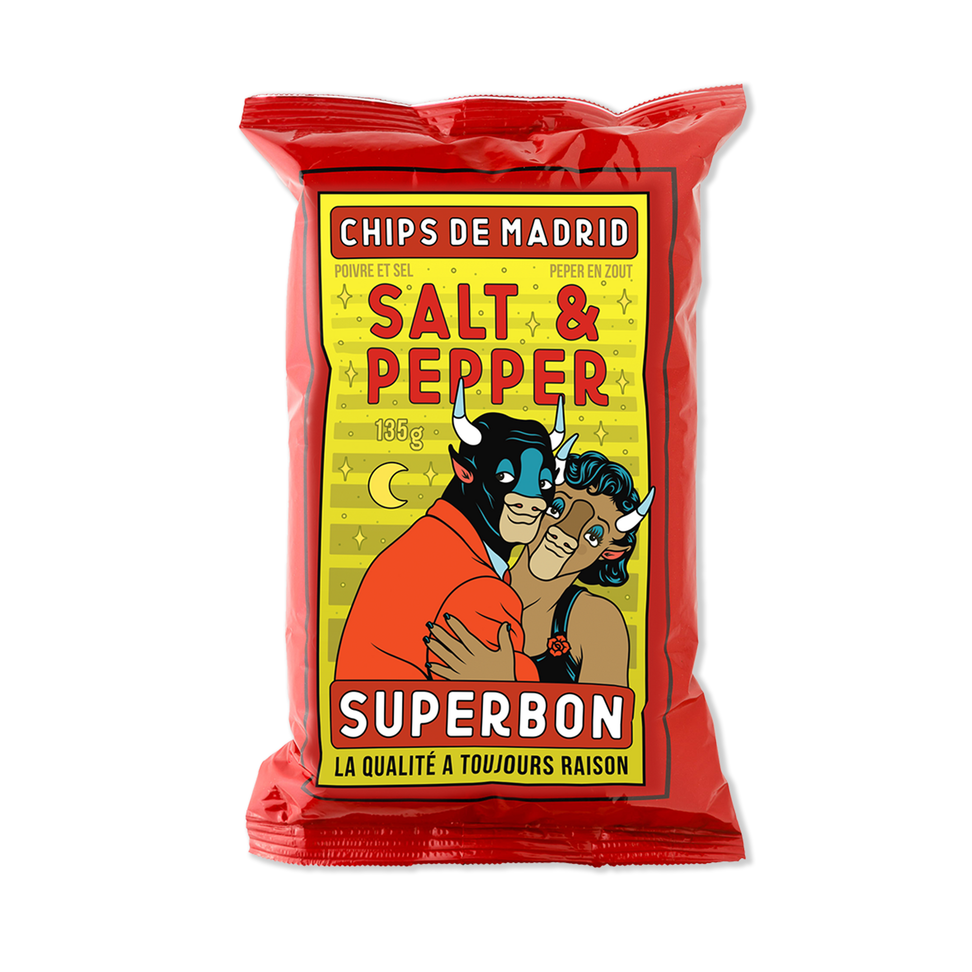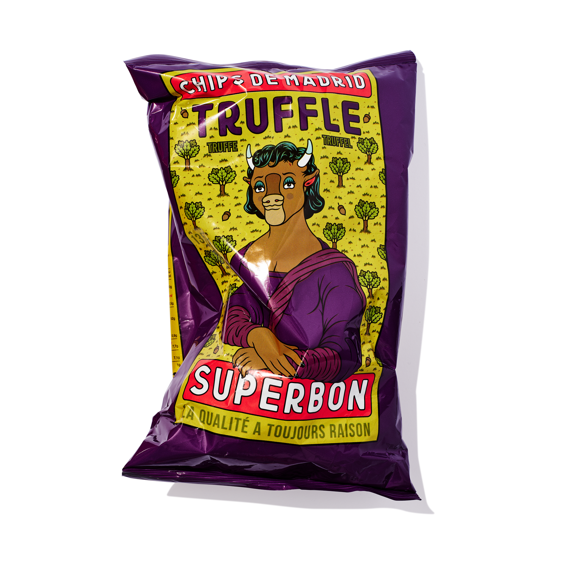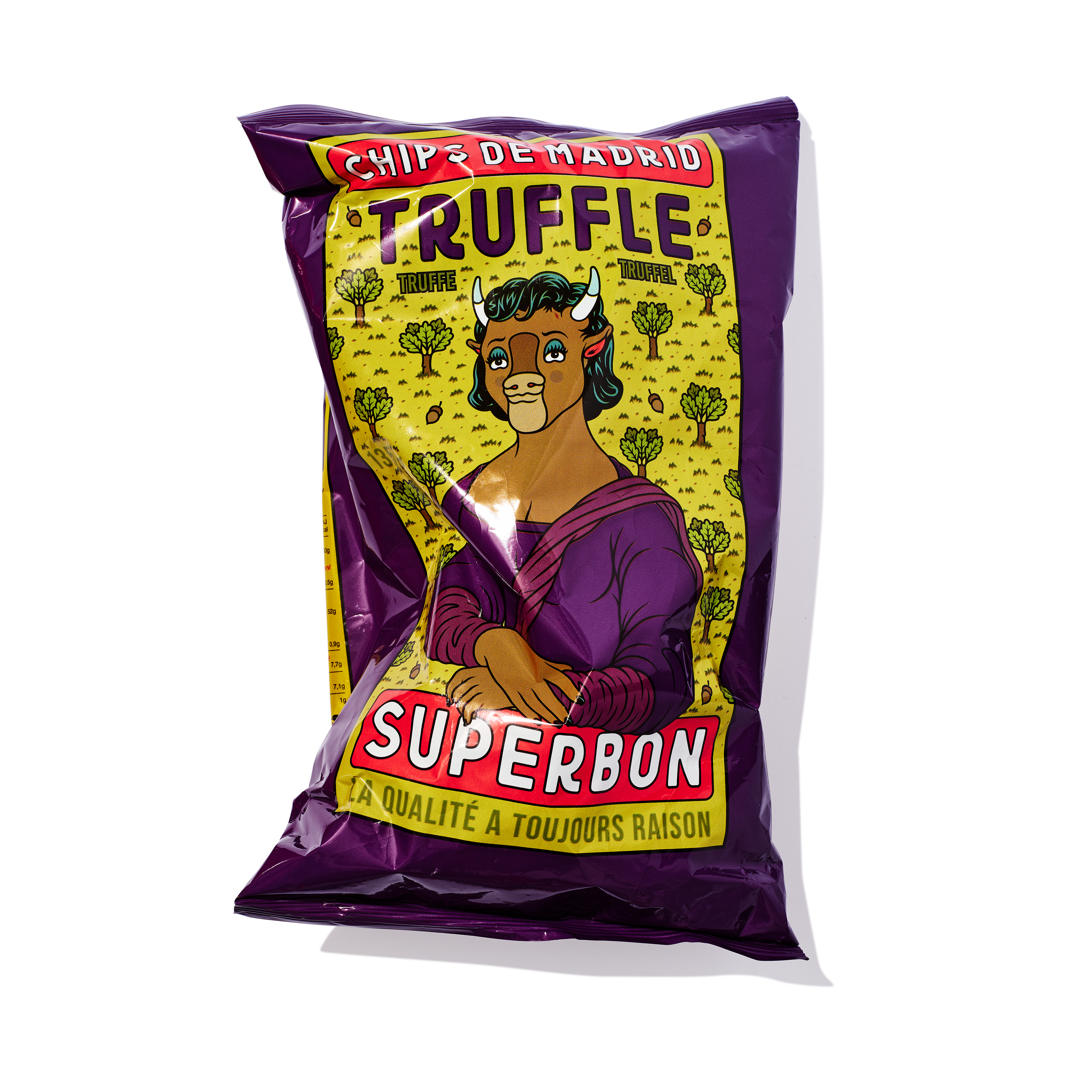 Calling all snack fanatics! Get ready to be wowed by the latest artistic creation from Greg Ewing. His passionate and humorous designs are always a hit, and this bag is no exception. And the treat inside? Their passion for potatoes knows no bounds, and they have scoured the globe to bring you the most mouth-watering collection of crisps ever assembled. Superbon's incredibly delicious crisps, include the finest flavours including classic salt and vinegar to exotic truffle, they have something to suit every taste bud. For those who appreciate great taste and unique design, this is a 10/10 winner.