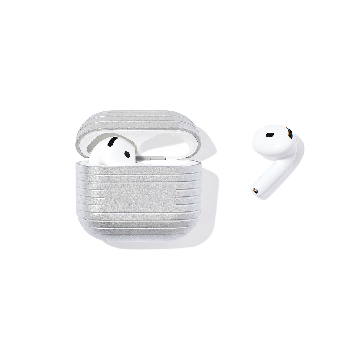 Elevate your AirPods with our new sleek metal cases. Crafted from premium silver aluminium, the cases offer robust protection while adding a touch of luxury. Customise it with your name or initials for a truly unique accessory. Experience the perfect blend of style and function.