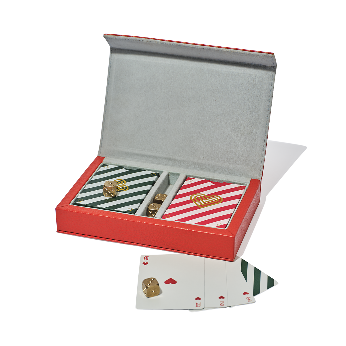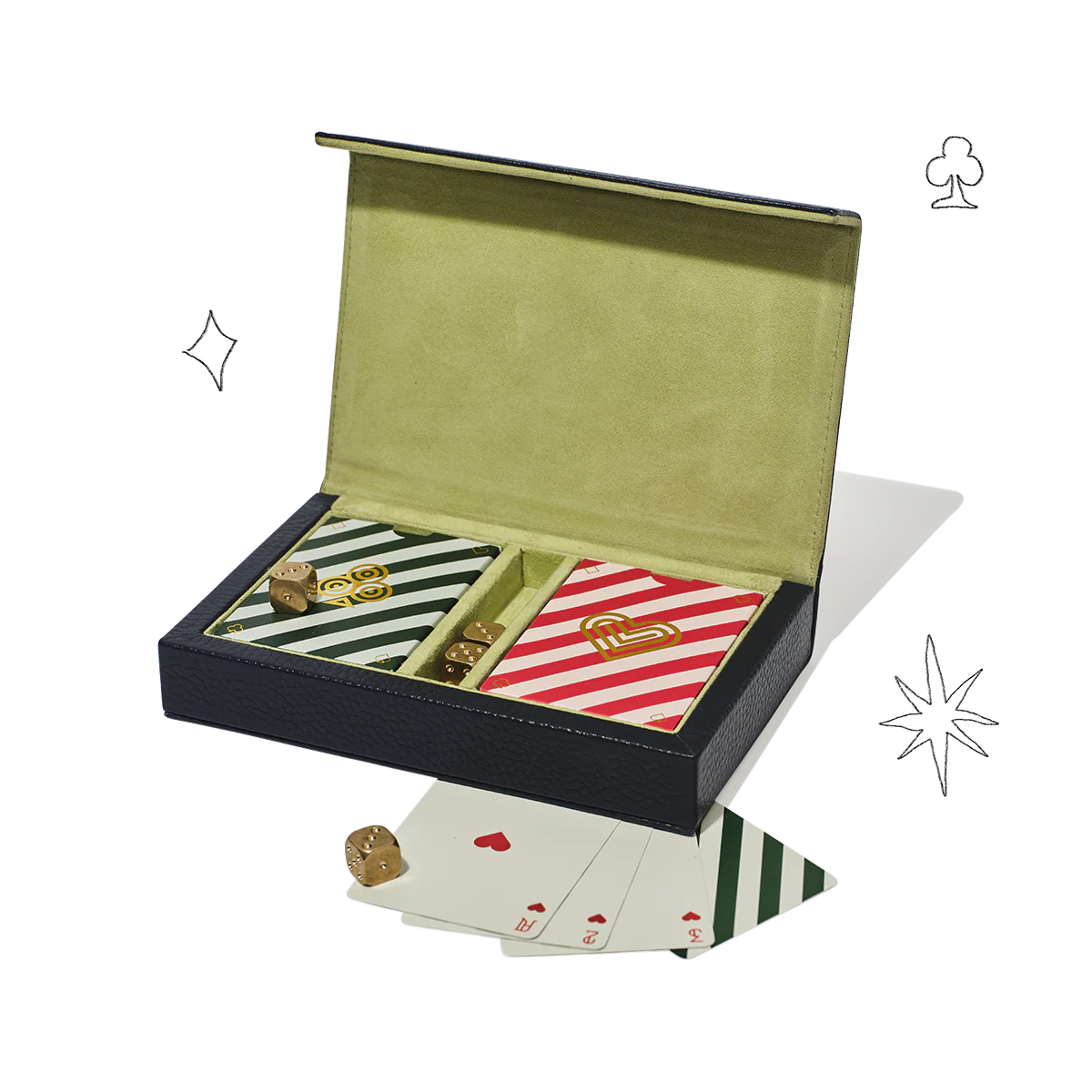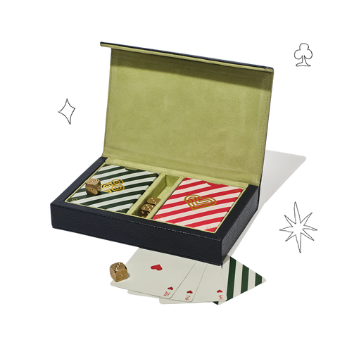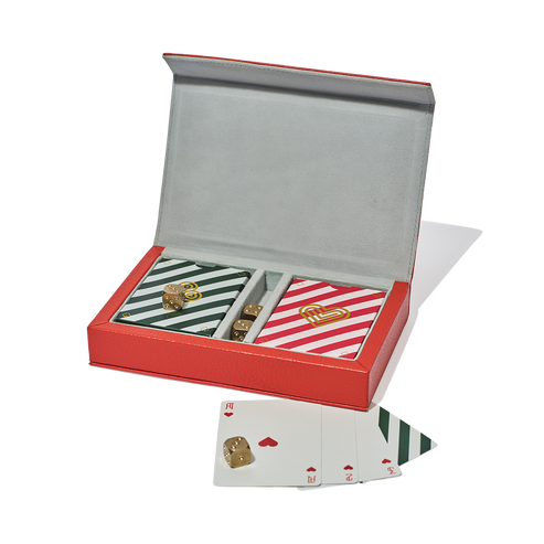 Complete with two decks of playing cards in our signature stripe design and four solid brass dice, this would make the perfect gift for anyone that loves that speakeasy vibe.