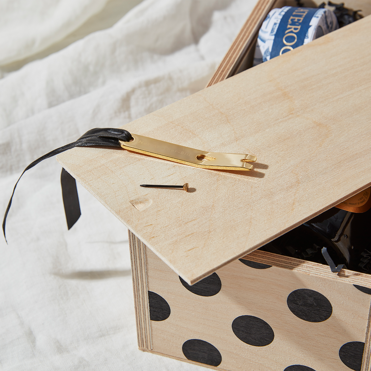 - Each Set, is housed in our polka printed wooden hampers (FSC certified Wood)