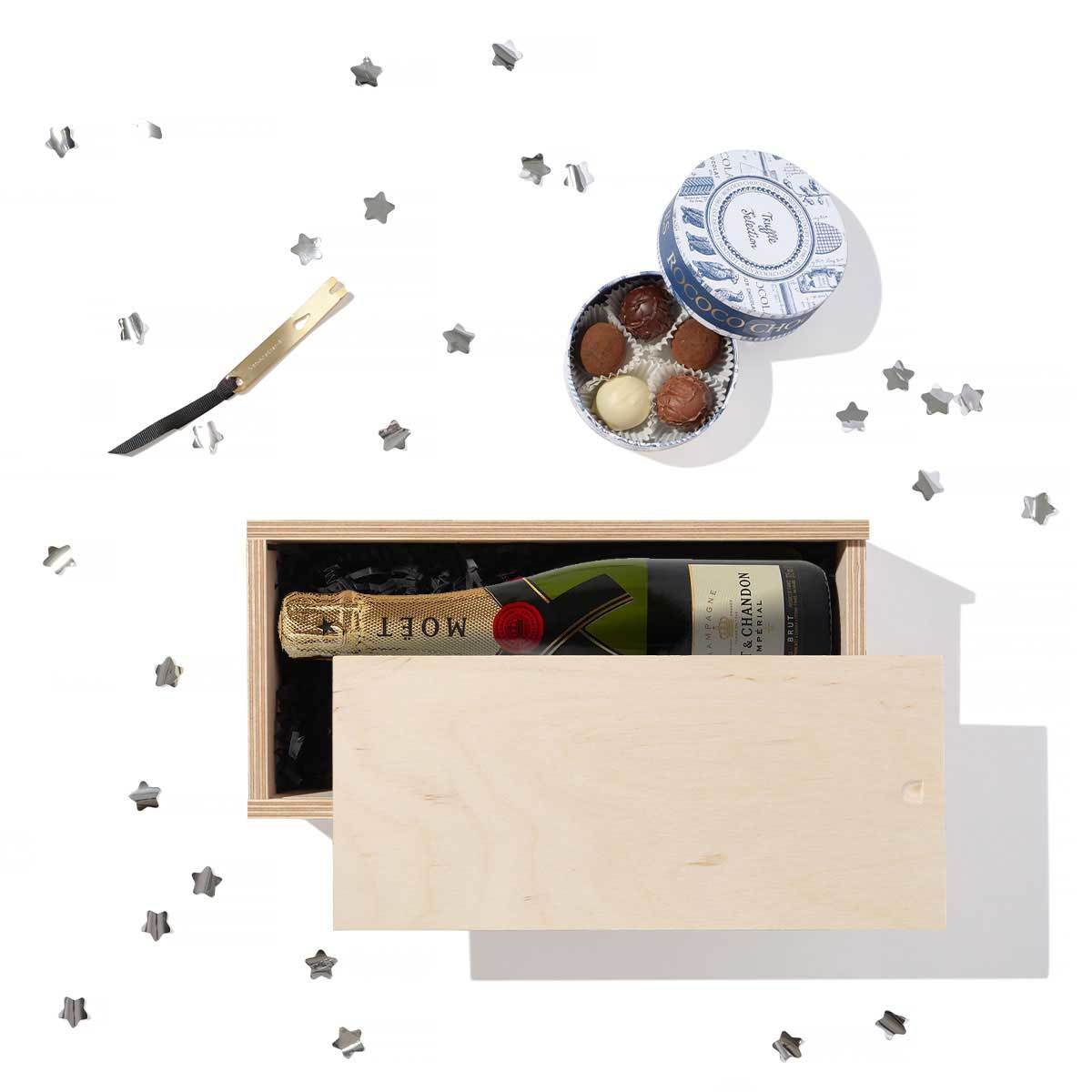 Featuring a half bottle of luxurious champagne and some artisan truffles by Rococo, and available to personalise this is sure to slip down a treat.