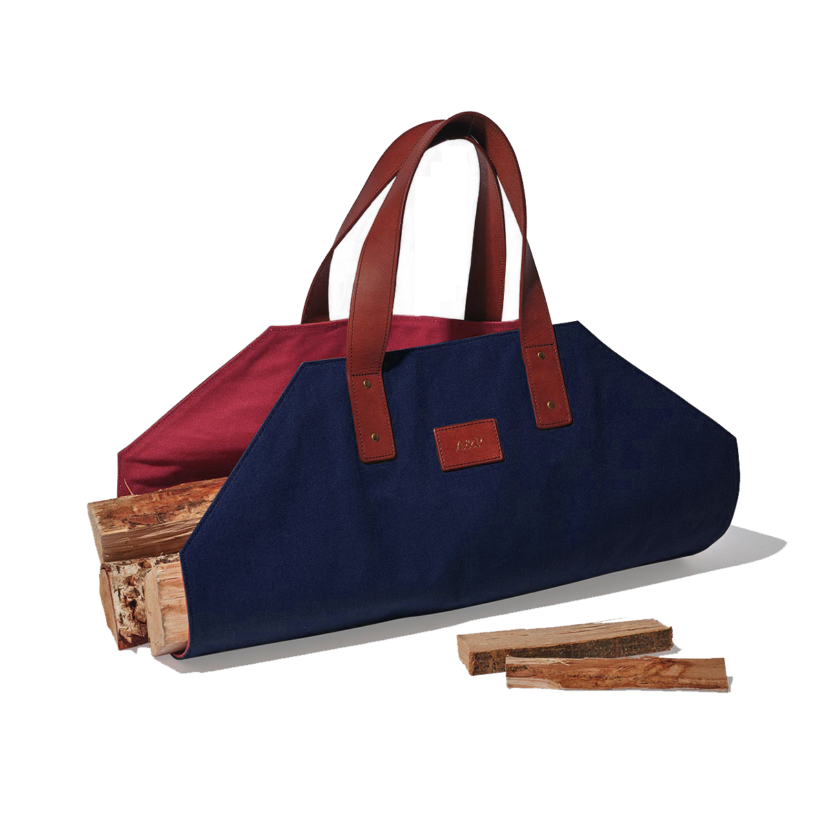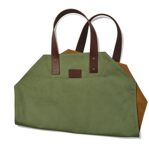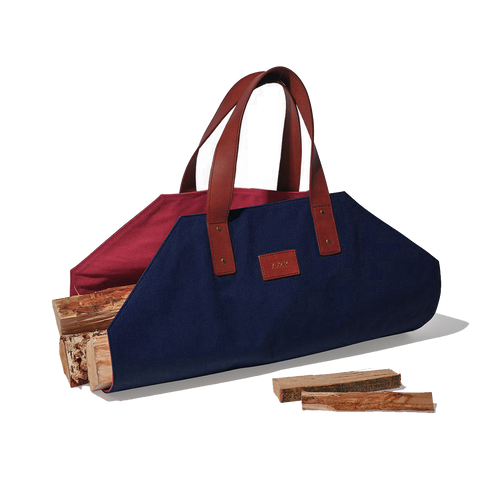 From forest to fireplace. Our rugged canvas log carrier is designed to carry wood in all shapes and sizes and is finished with genuine leather straps. Make this a truly lasting gift and have the leather patch monogrammed with a name, initials or even a house name.