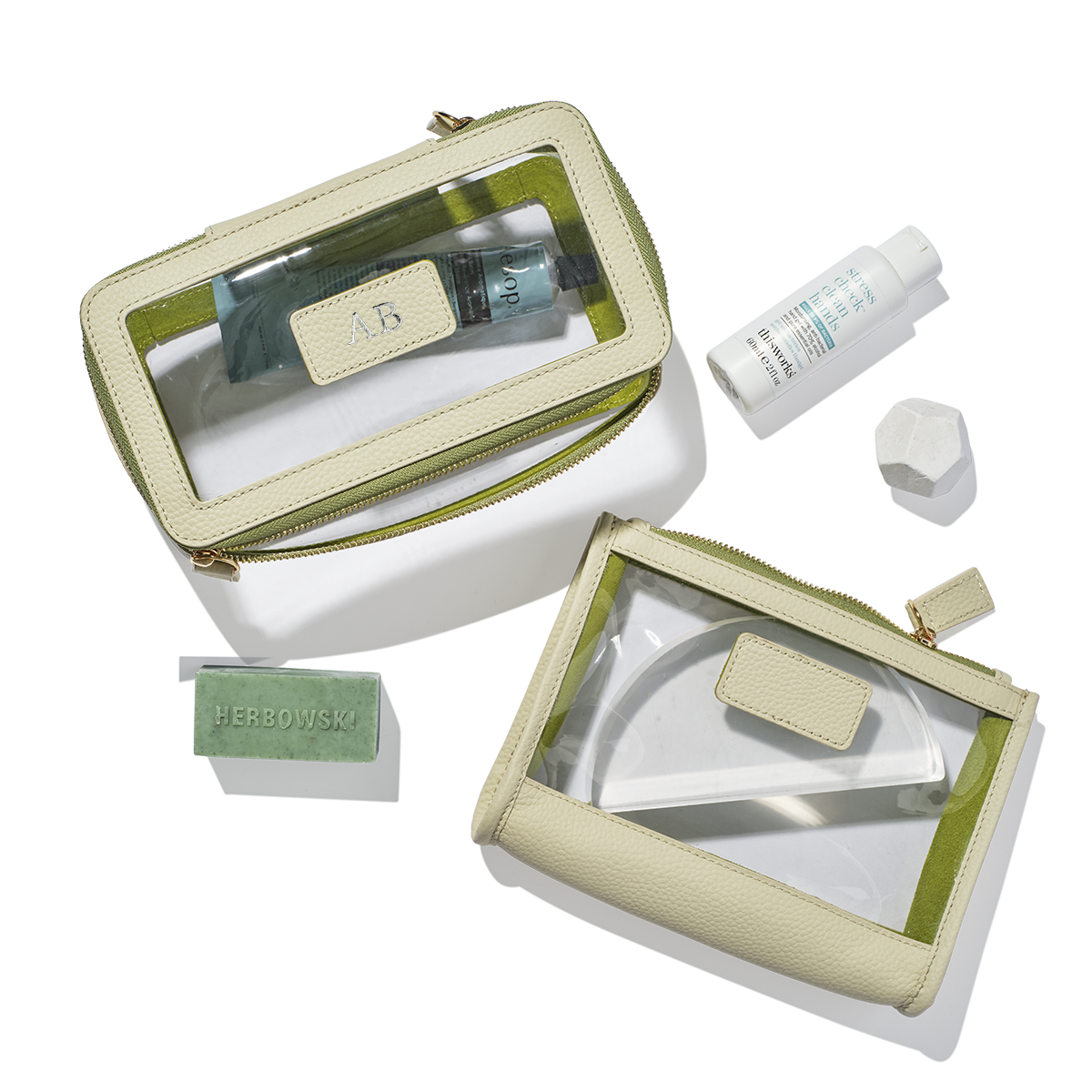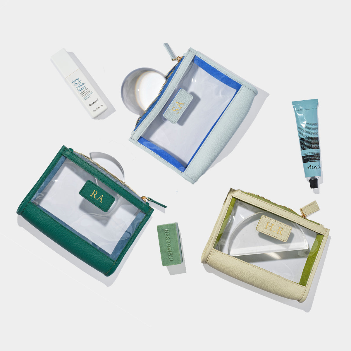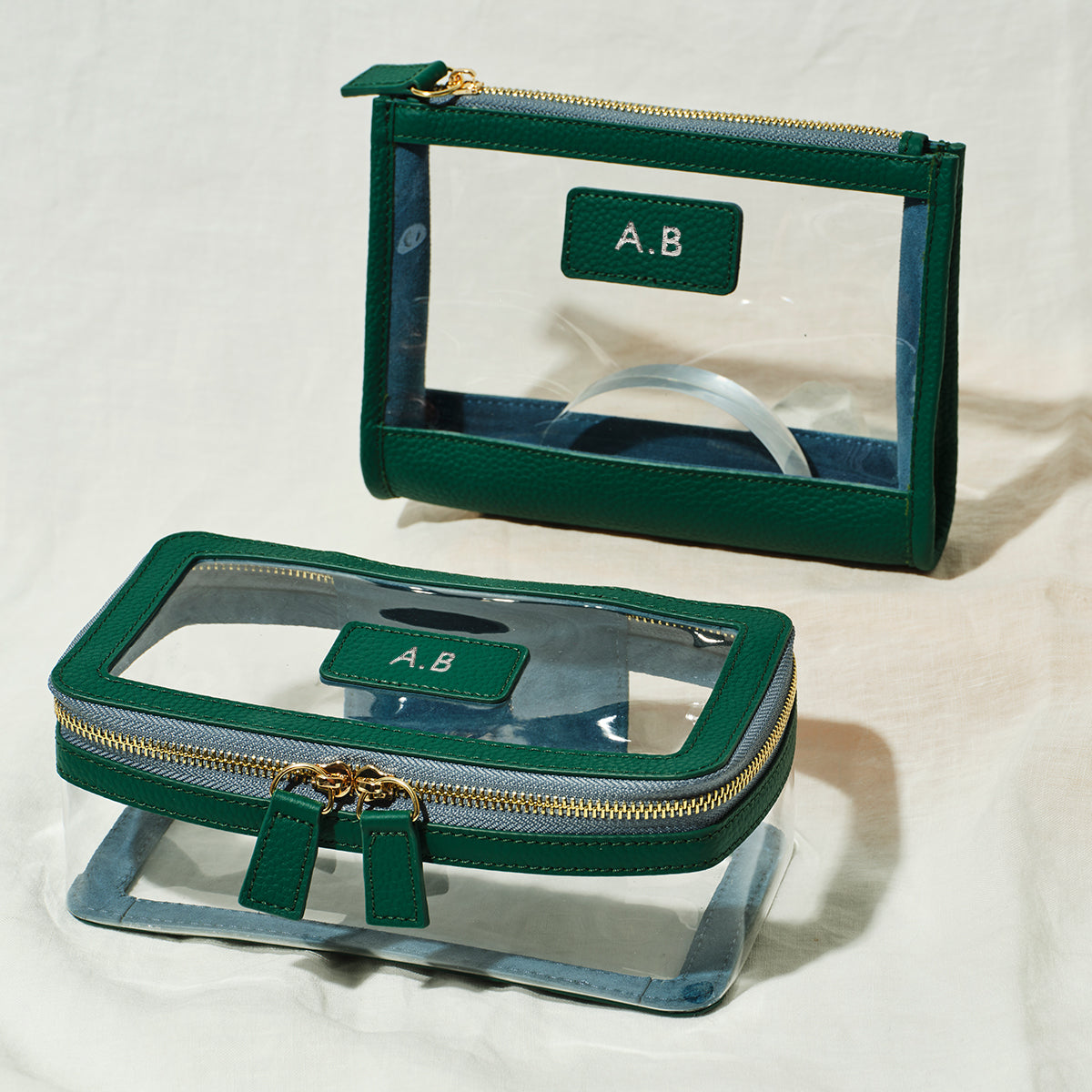 Made from Pebble Grain leather with a clear panel and gold hardware. Don’t forget to personalise with initials or a name to make it your own.