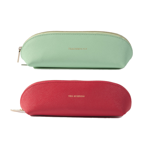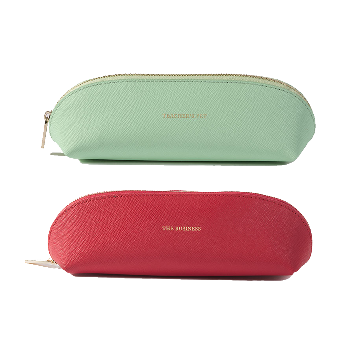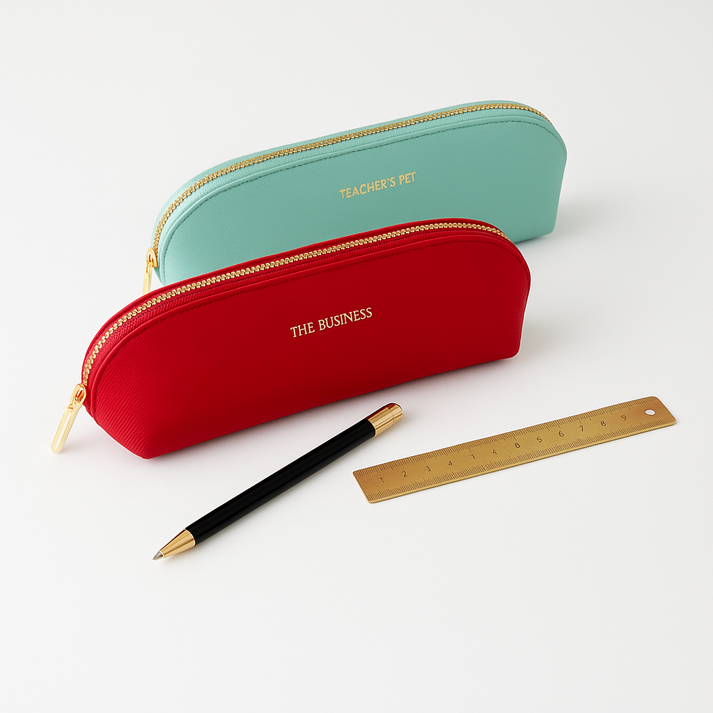 Stay organised in style with our Recycled Leather Pencil Case, designed in collaboration with Paper Thinks. Made from eco-conscious recycled leather and finished with gold-tone zippers, it’s both practical and polished. Available in bold colours with playful embossed phrases it’s the perfect gift for the one who means business (or is more of a teacher's pet).